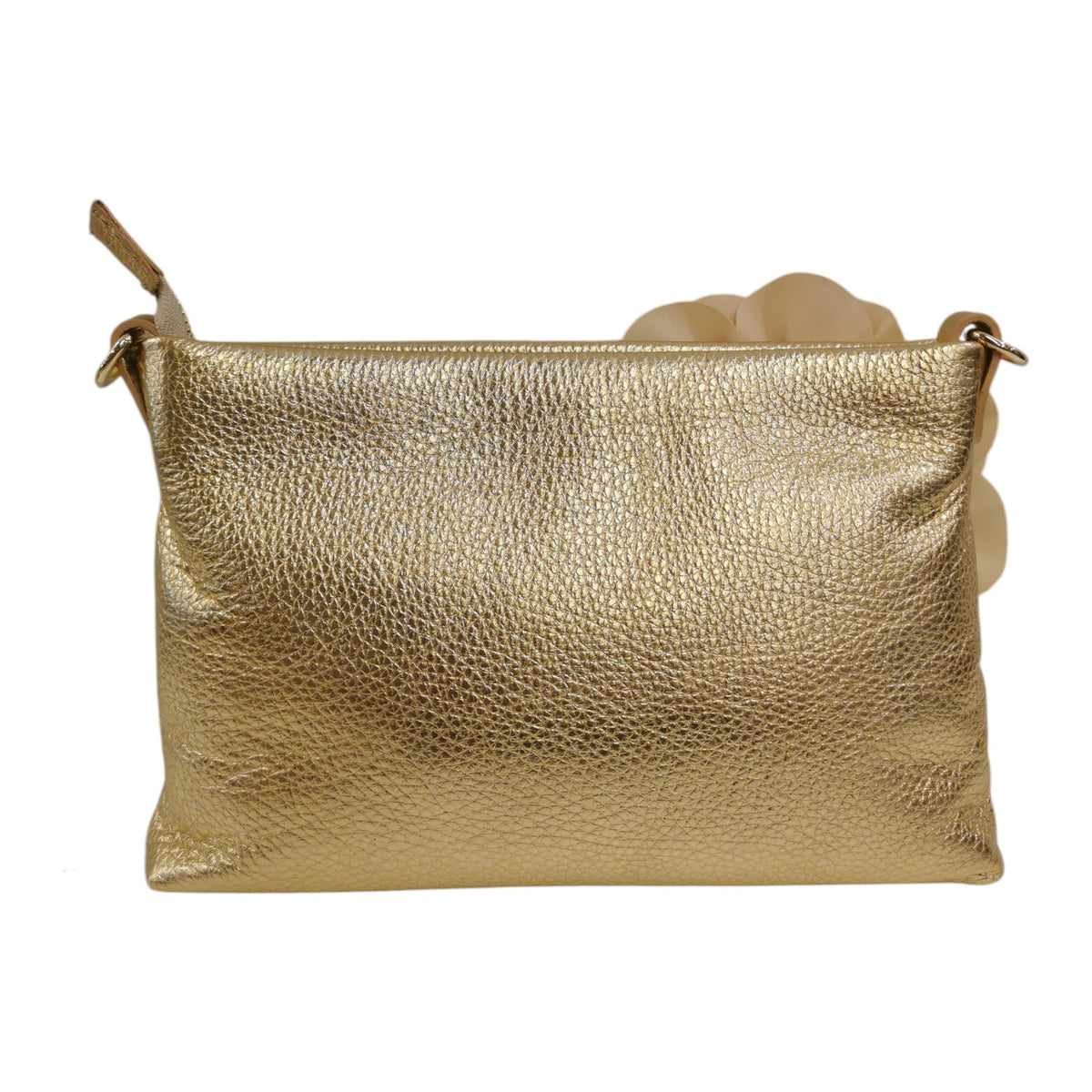 M Brc Pochette Donna in Pelle Oro Linea Dream con Fiore Laterale in Raso