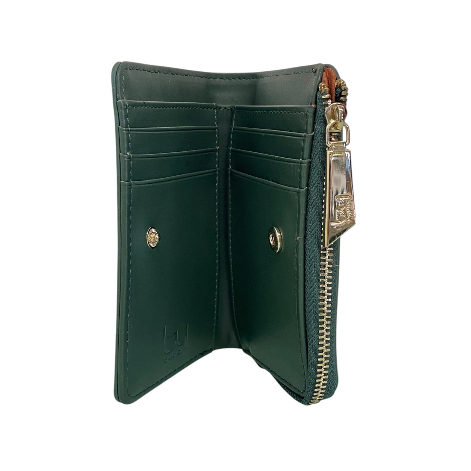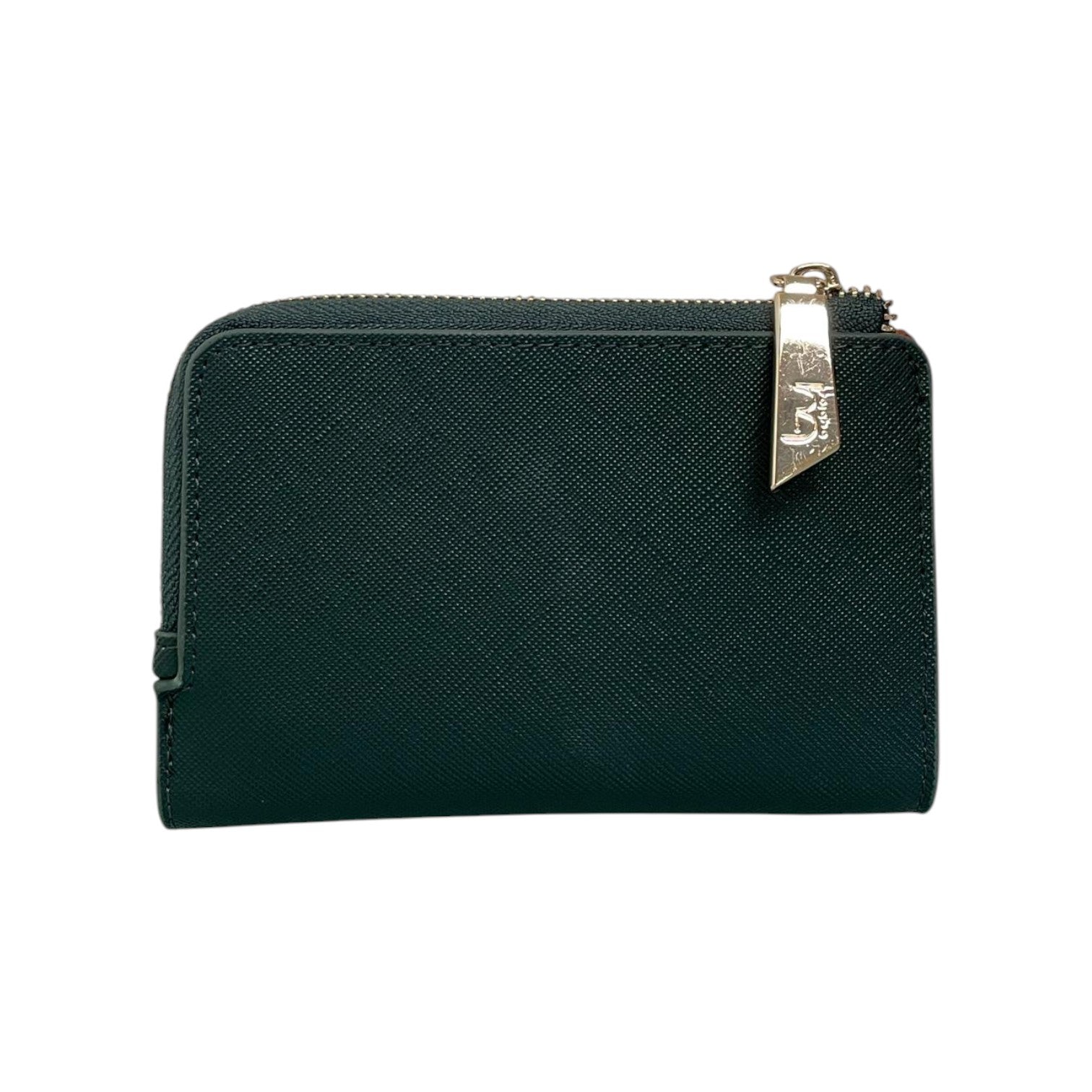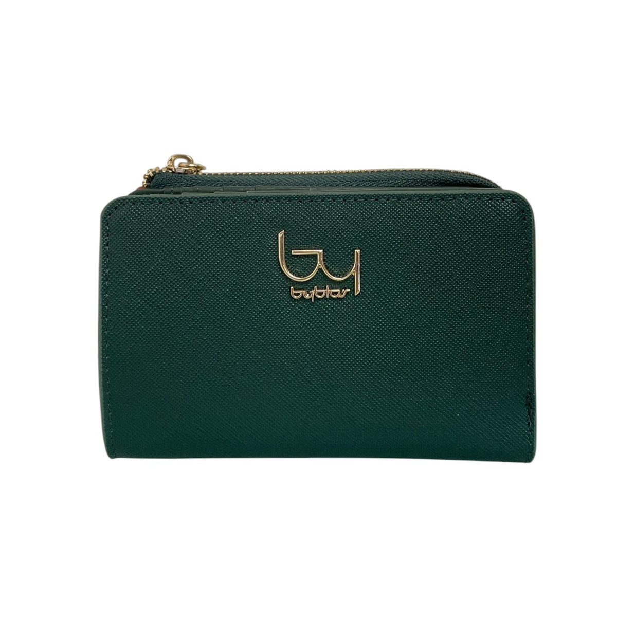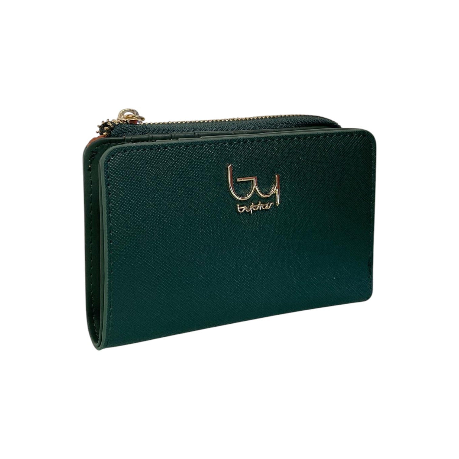 Il Portafoglio firmato By Byblos, realizzato in ecopelle effetto saffiano qui proposto nella variante verde foresta è caratterizzato da uno scomparto per banconote e una tasca laterale con chiusura a zip per monete, 6 slots per carte credito e tessere.