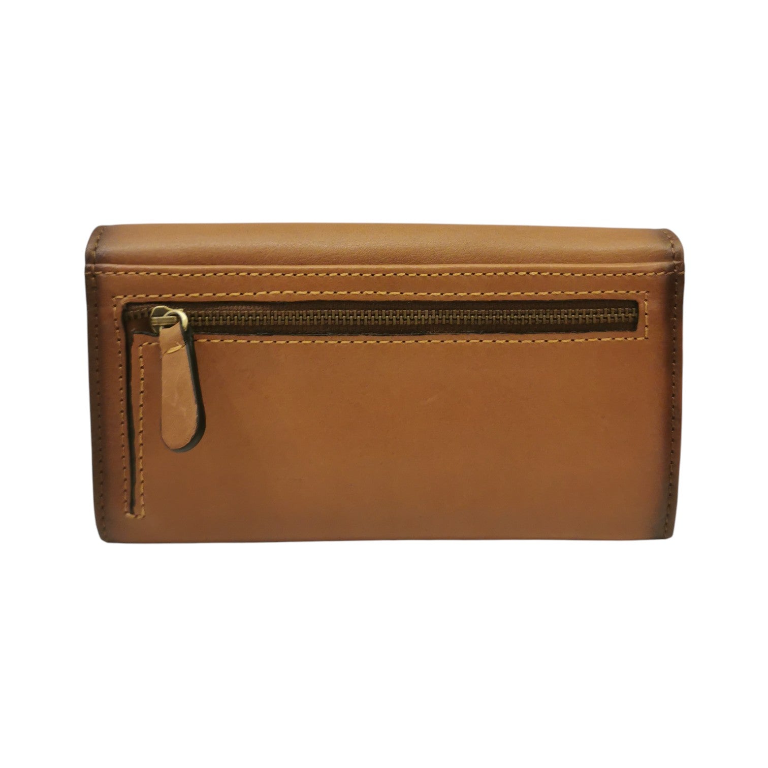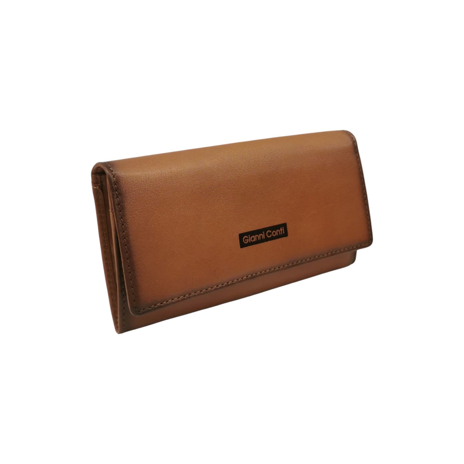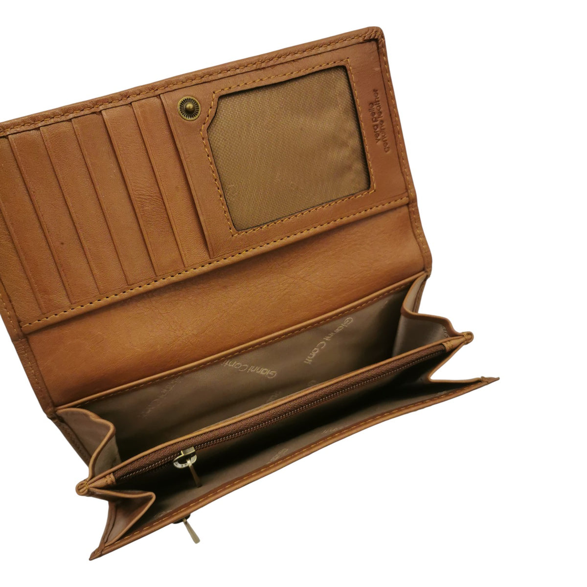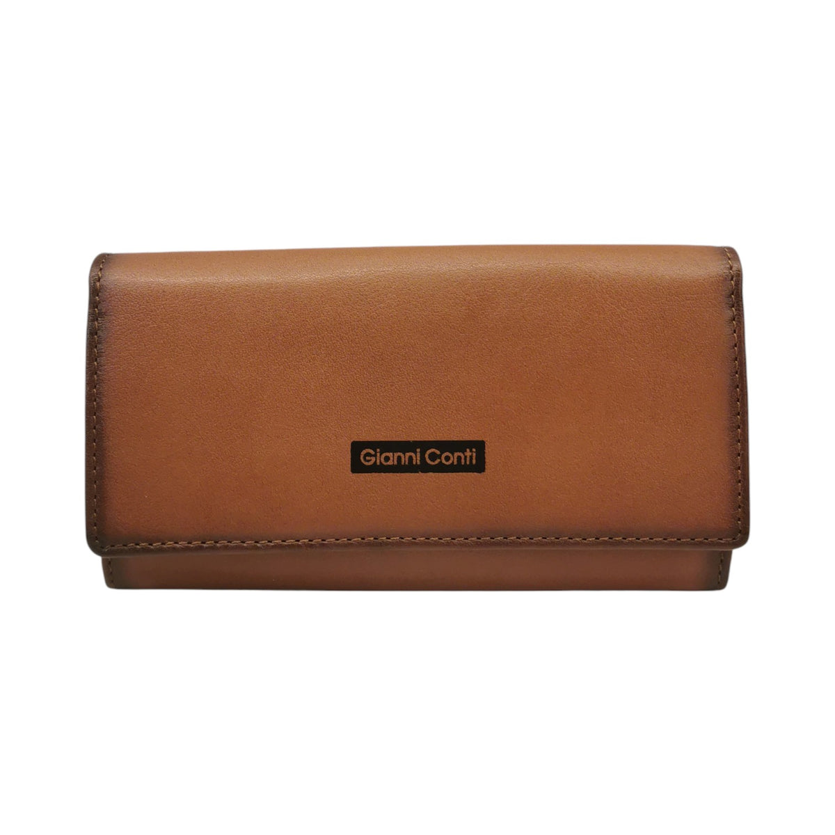 Gianni Conti Portafoglio Donna in Vera Pelle Cuoio con Bottone e Sfumature