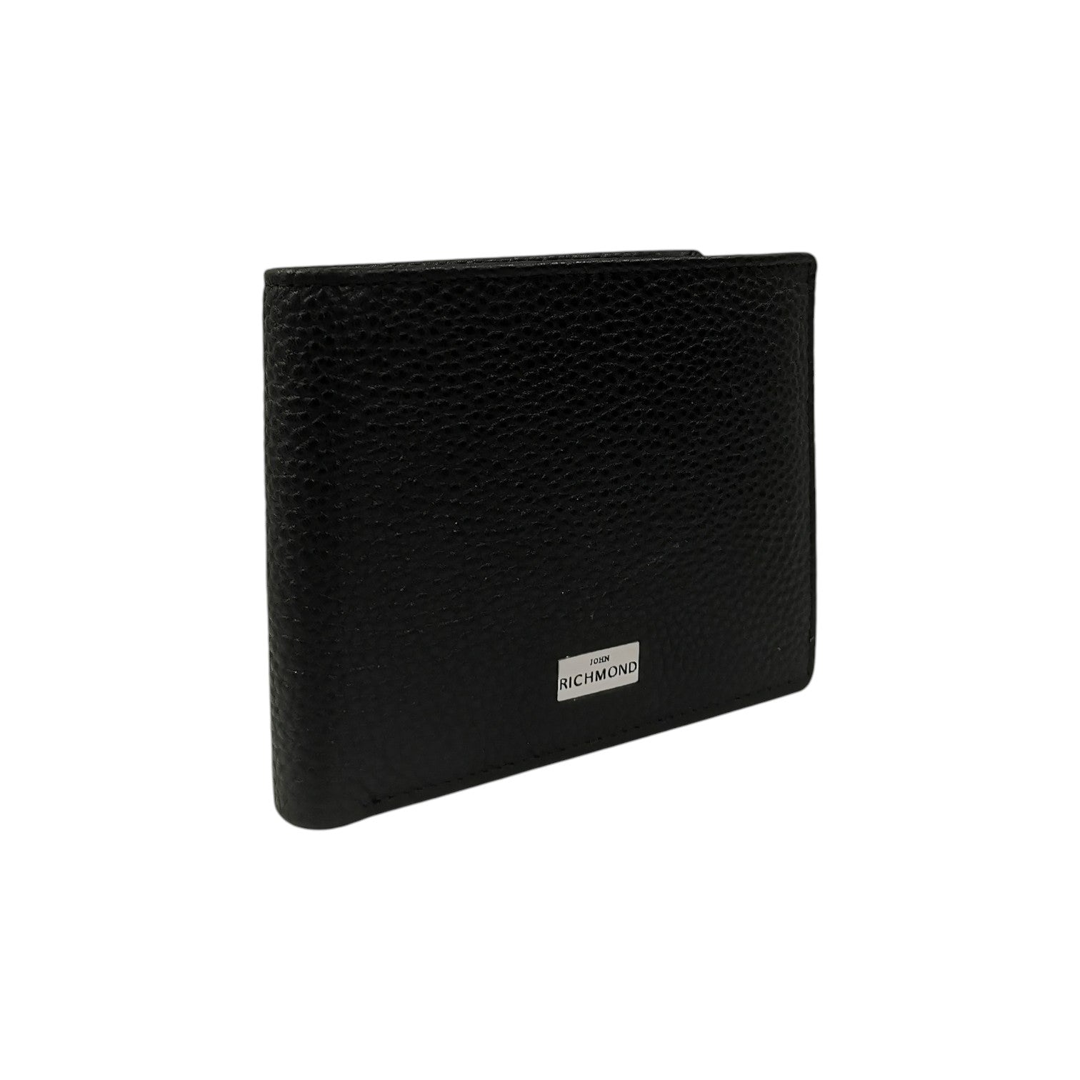 John Richmond Portafoglio Rettangolare Uomo in Pelle Nera Martellata con Targhetta Logo
