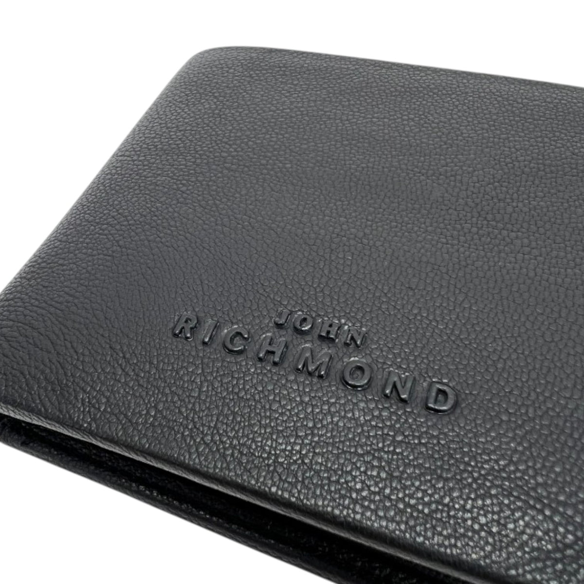 John Richmond Portafoglio Uomo in Pelle Nera con Logo Inciso Frontale