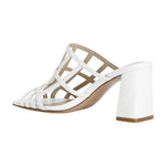 Lo Scalzato firmato Cafènoir, realizzato in pelle nella variante bianca è caratterizzato da particolare tomaia a gabbia effetto stampato e da fodera e plantare rivestiti in pelle. Presenta un tacco largo alto 9cm, calzatura elegante con stile e formale.