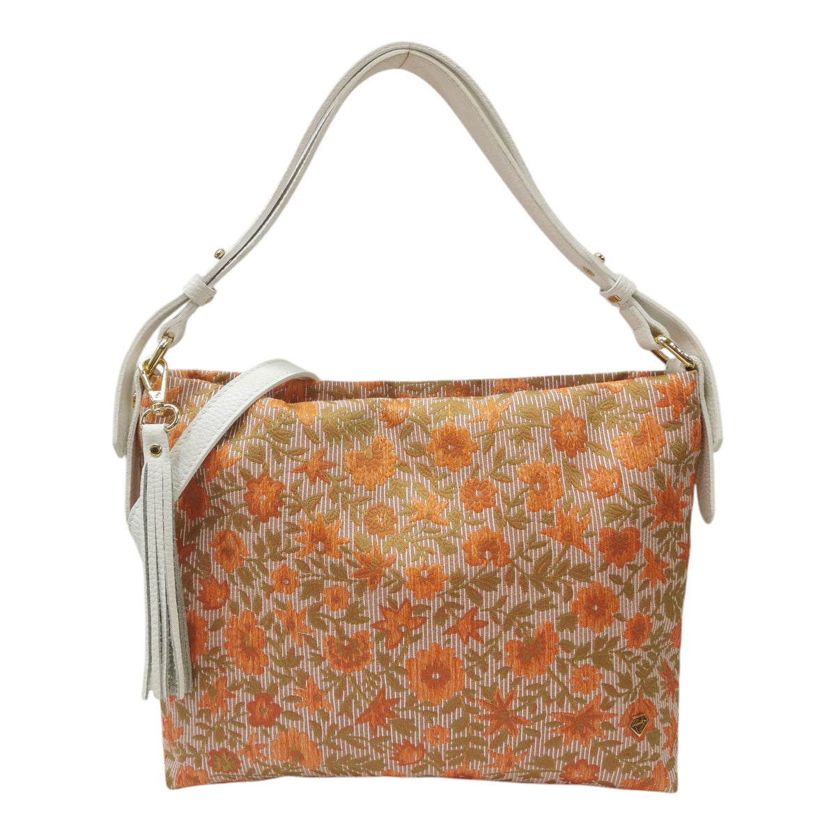 La Borsa a spalla firmata Caleidos, unisce eleganza e praticità con il suo tessuto salmone a stampa floreale e il manico regolabile in pelle per il massimo comfort. Il charm con frange removibile aggiunge un tocco di stile unico, mentre l’interno foderato con tasca zip assicura ordine e sicurezza degli oggetti personali. Perfetta per chi cerca una borsa sofisticata e funzionale