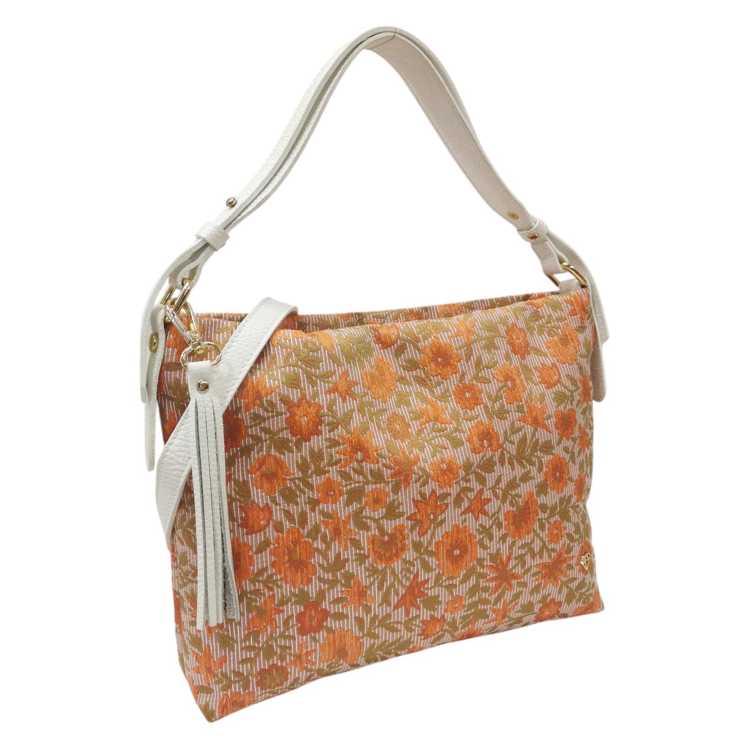 Caleidos Borsa a Spalla Donna in Tessuto Salmone con Stampa Floreale e Manico in pelle