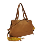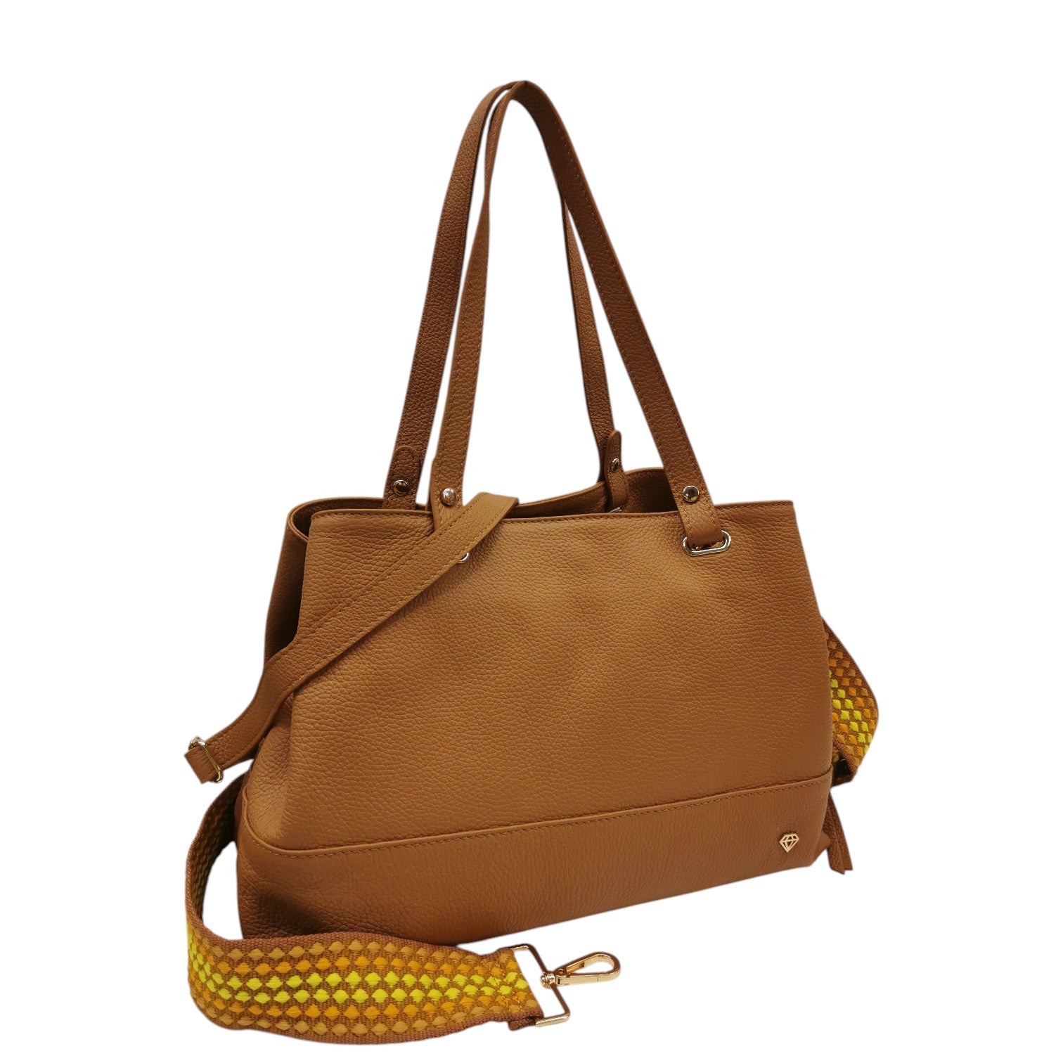 Caleidos Borsa a Spalla Grande Donna in Pelle Caramello con Doppia Tracolla