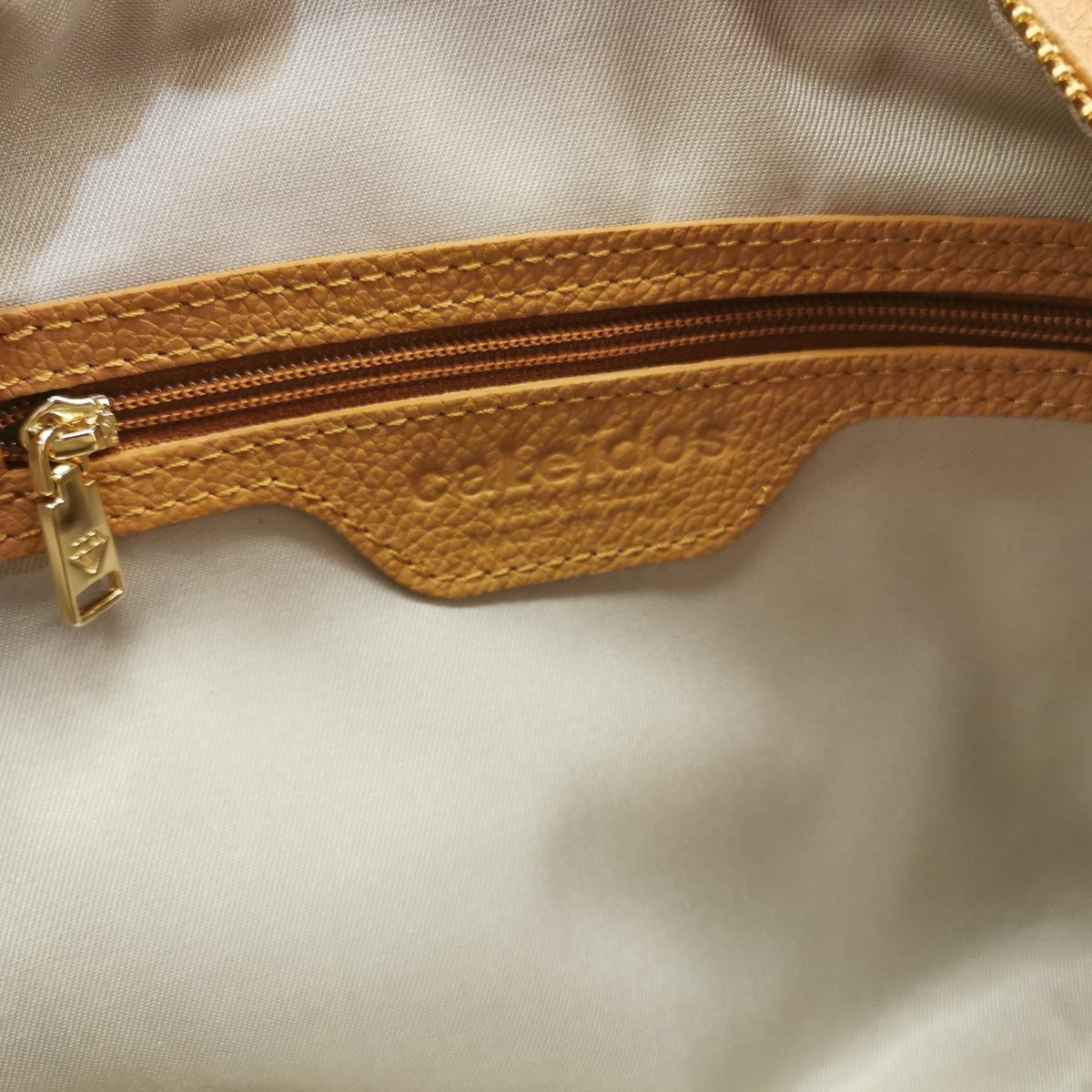 La Borsa a spalla firmata Caleidos, realizzata in vera pelle dalla texture morbida qui proposta nella variante caramello è caratterizzata da doppia tracolla una in tessuto ed una in pelle. L'interno è foderato in tessuto di cui è suddiviso in triplo scomparto di cui dispone di taschino aperto e uno con zip. Un accessorio indispensabile per chi cerca design raffinato e praticità quotidiana.