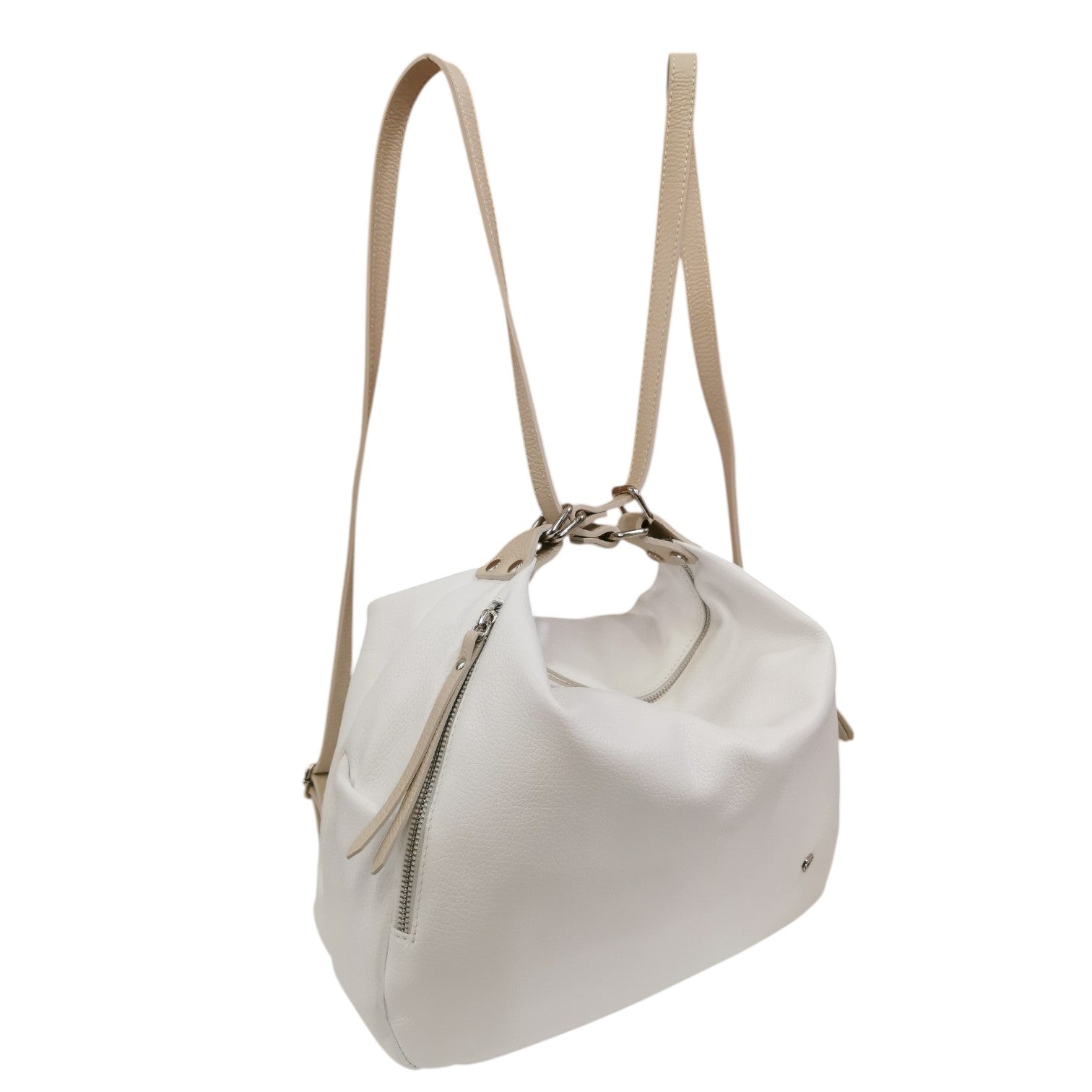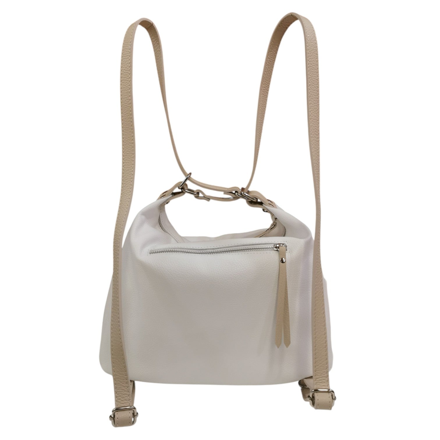 Caleidos Borsa/Zaino Donna in Pelle Bianco Beige con Zip