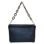 La Borsa a spalla firmata Caleidos, realizzata in pelle martellata qui proposta nella variante blu è caratterizzata da doppia catena removibile sia da usare come decorazione che come manico con tracolla in pelle. L'interno è foderato in tessuto di cui dispone di tasca con zip.