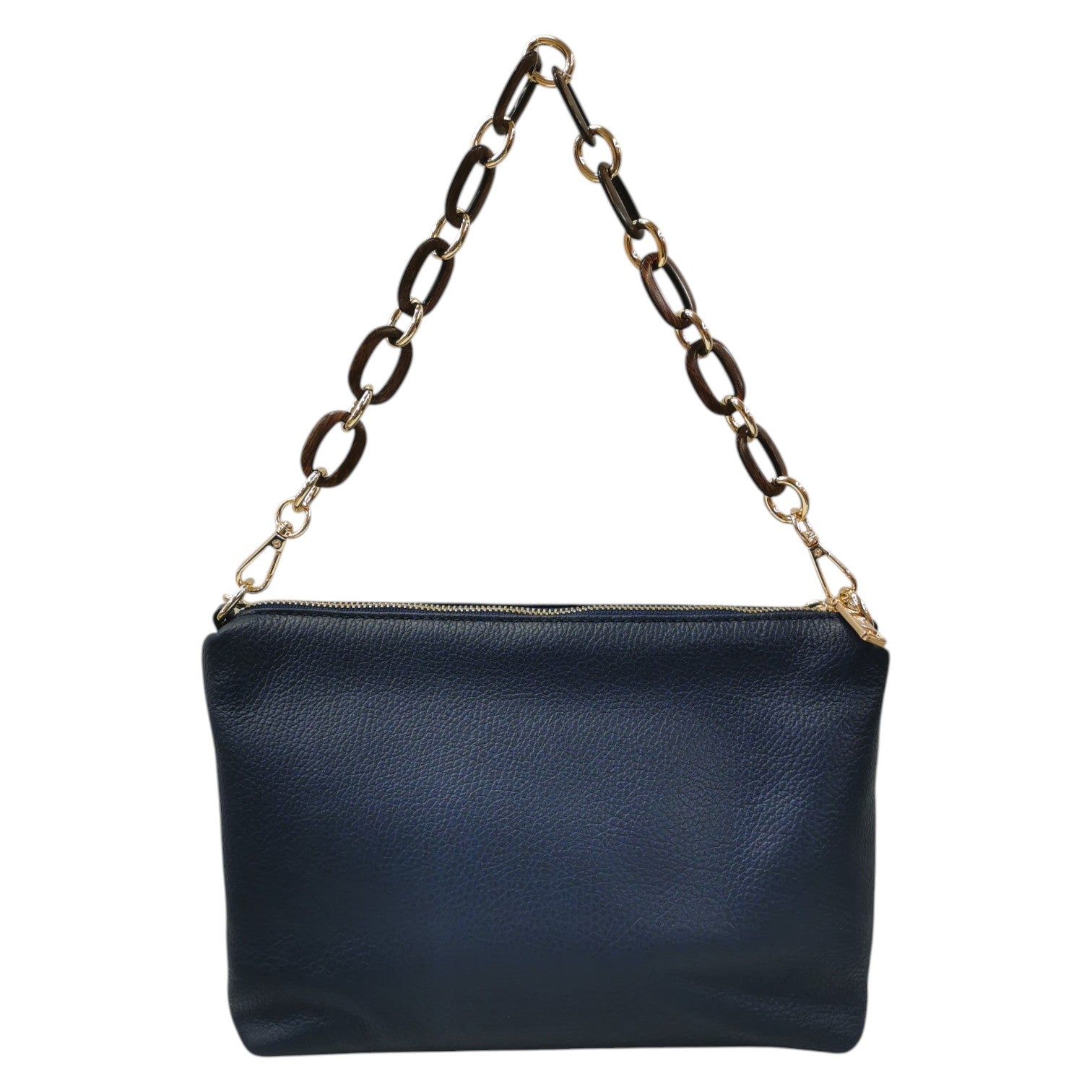 Caleidos Pochette Donna in Pelle Martellata Blu con Doppio Manico a Catena
