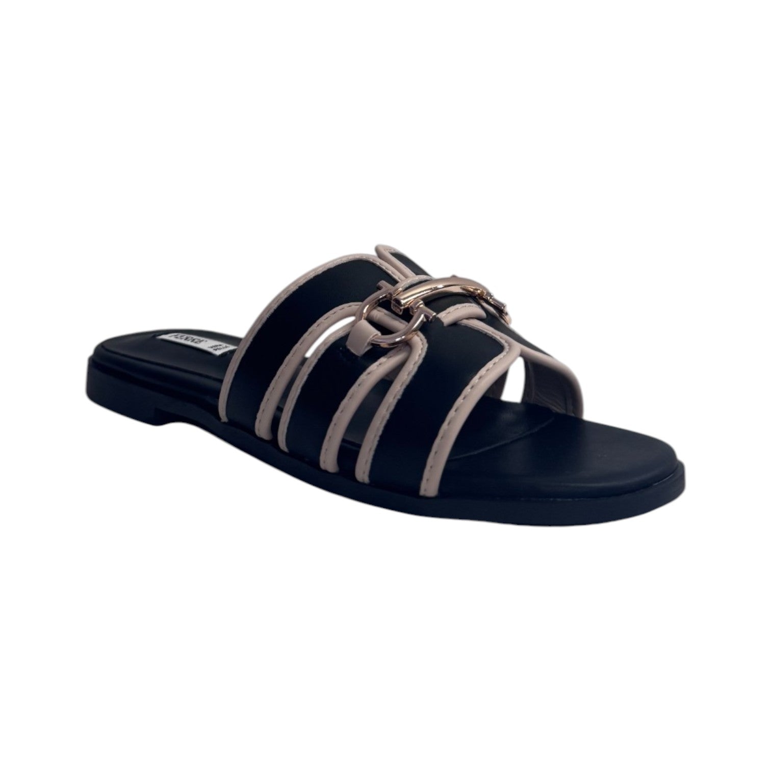 Ferrè Ciabatta Donna Bassa in Ecopelle Nera con Inserti Beige e Morsetto Dorato