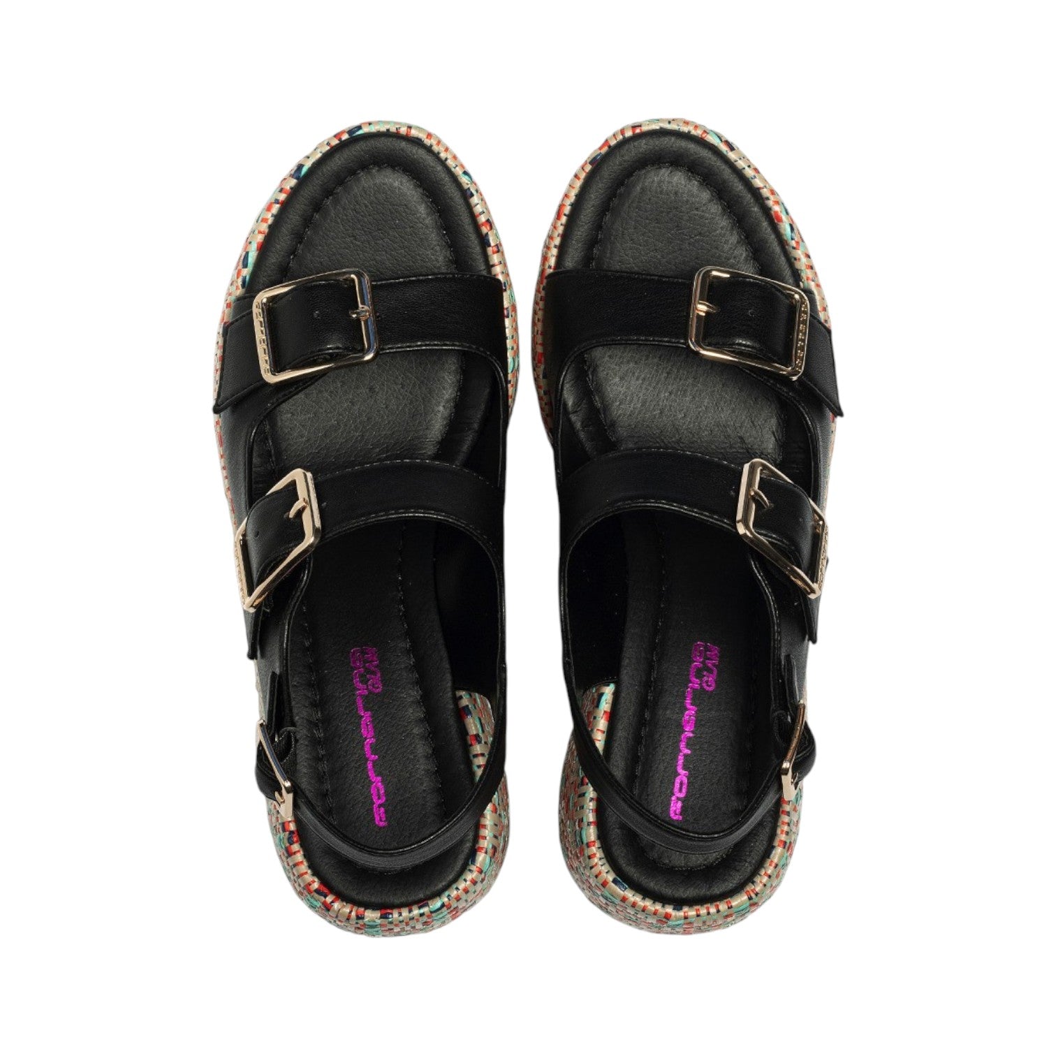 Fornarina Mila Sandalo Nero con Zeppa in Raffia Colorata da Donna