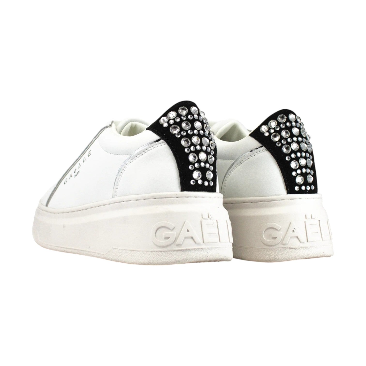 Gaelle Sneakers Platform Donna in Ecopelle Bianca Nera con Mini Strass