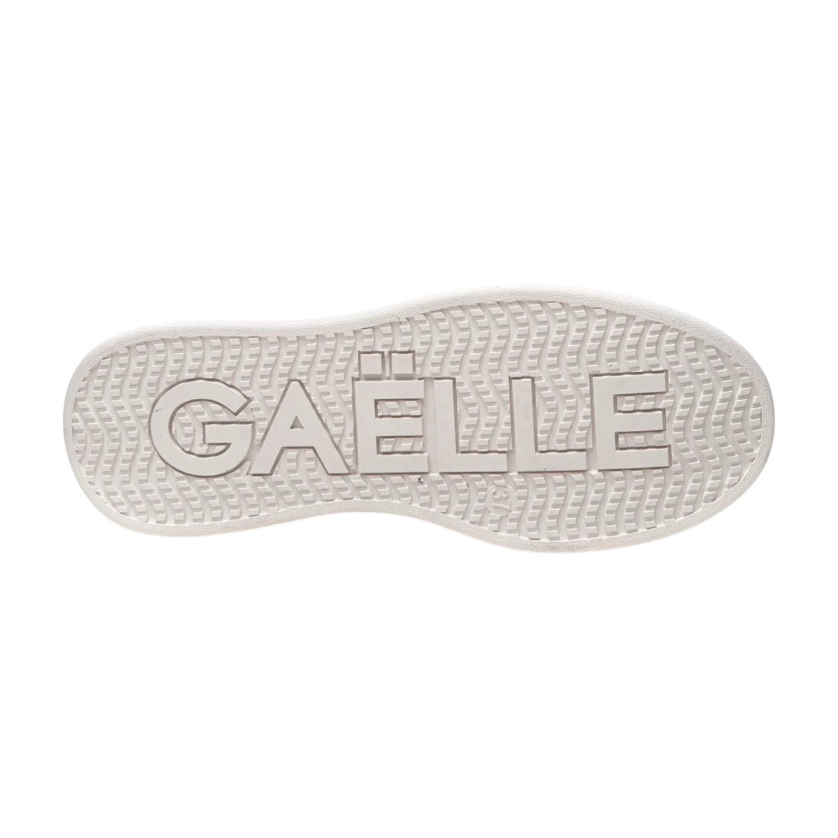 La Sneakers firmata Gaelle, modello platform leggermente più rialzata sul retro, rendendola comoda e stabile per tutti i giorni, realizzata in misto pelle è caratterizzata da dettagli sulle cuciture laminati e il talloncino in suede tempestato di maxi strass la rendono unica e femminile.