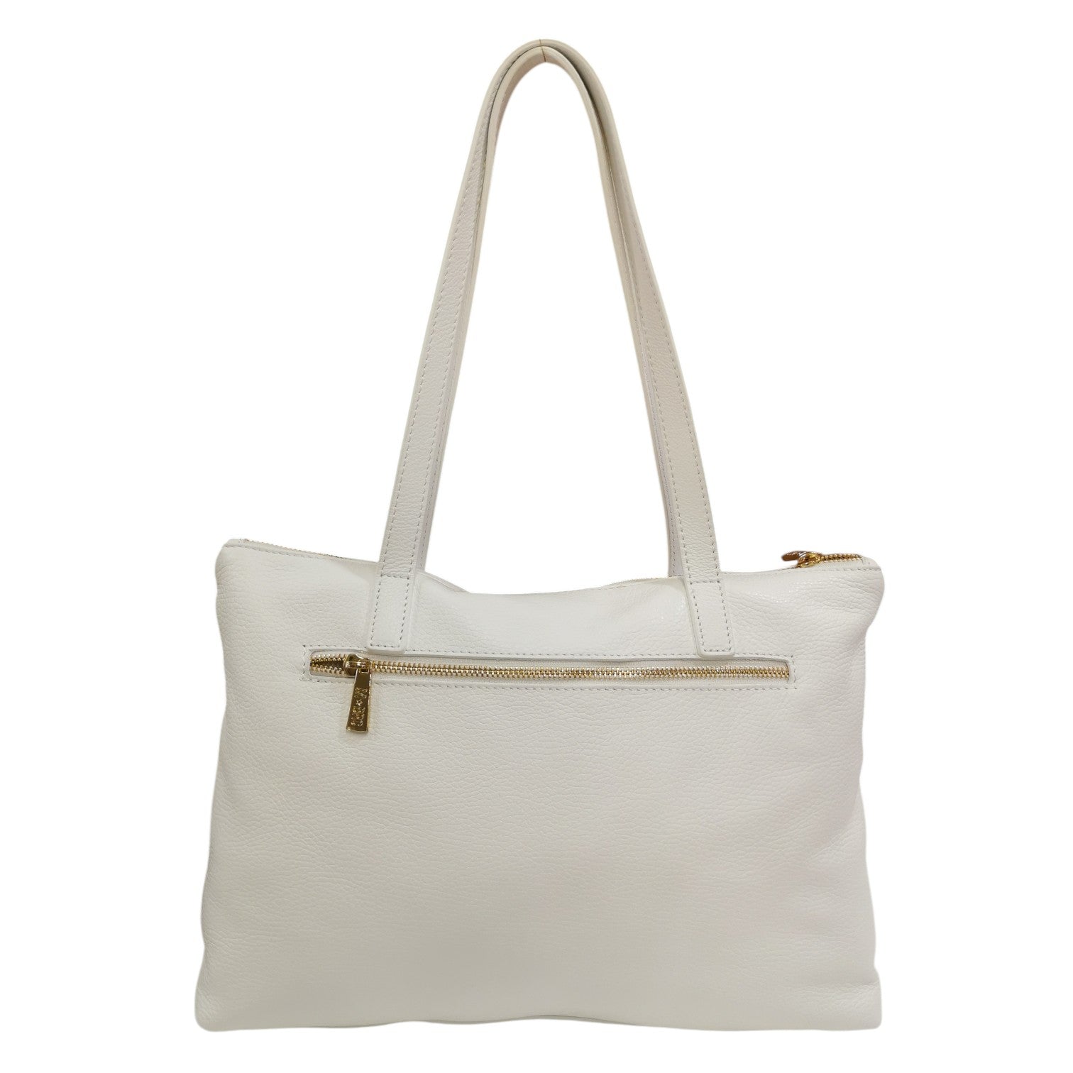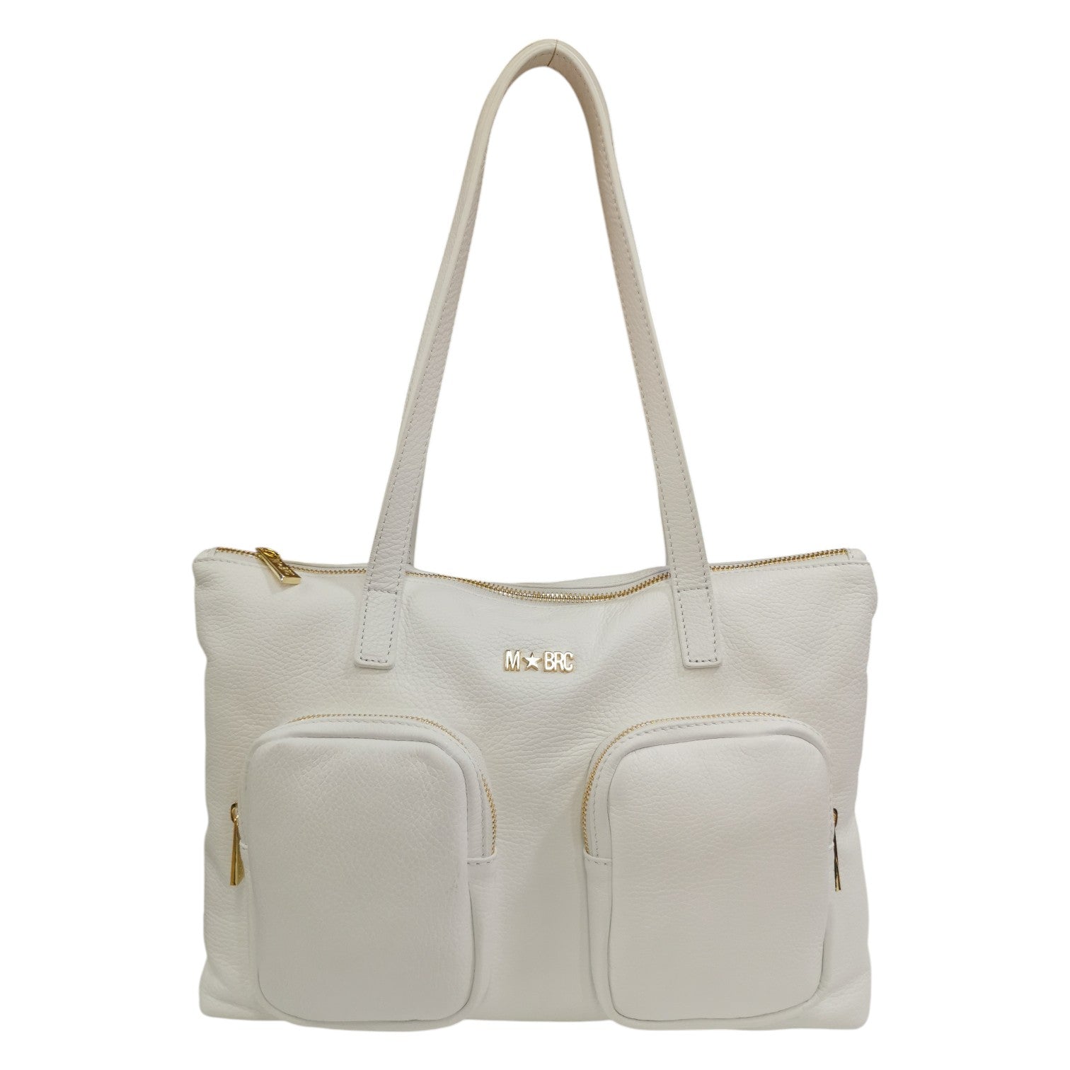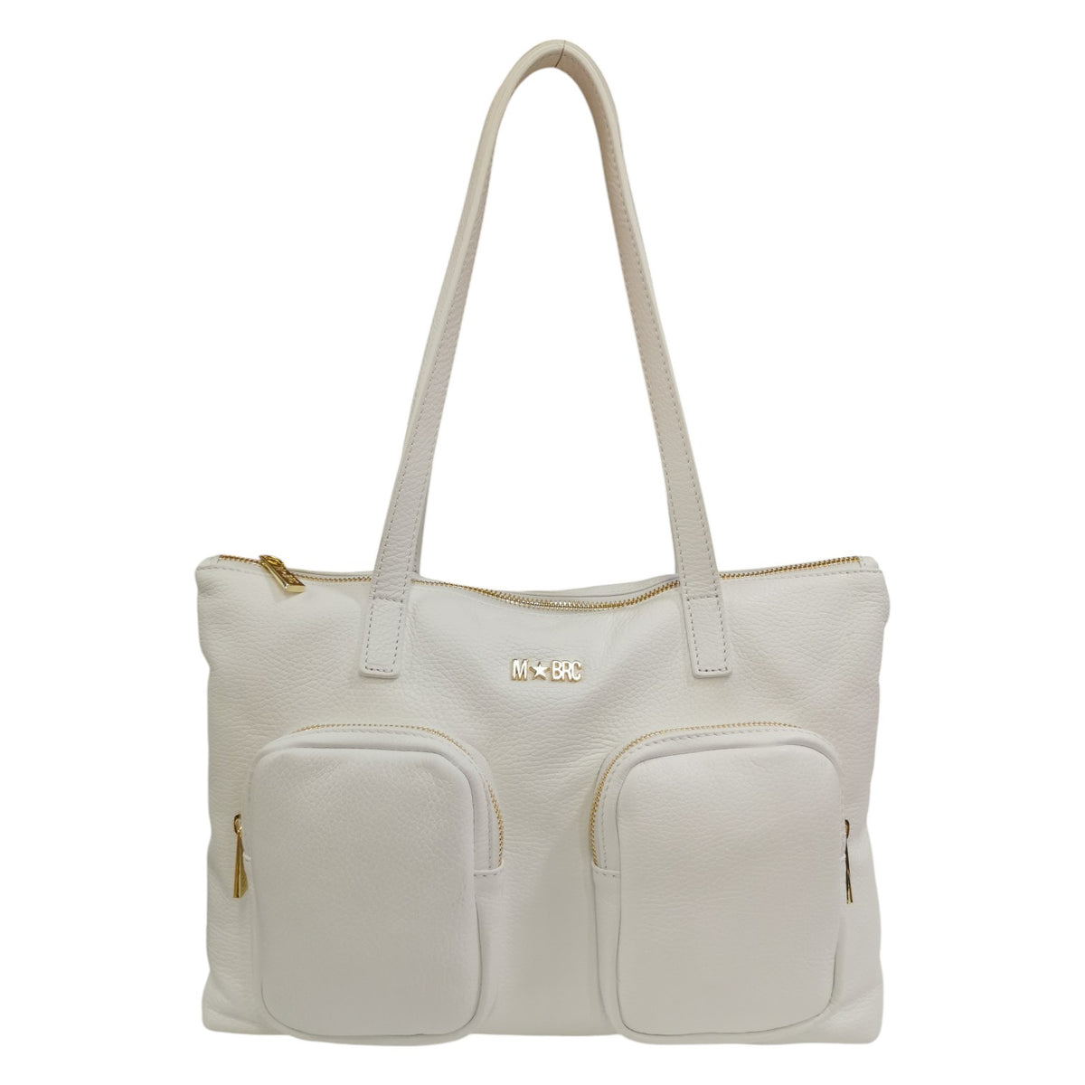 M Brc Shopping Bag Donna Linea Voyager in Pelle BIanca con Tasconi Frontali