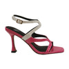 Il Sandalo firmato By Byblos, realizzato in vernice è caratterizzato da dettagli lime e neri e da fascette lungo il collo del piede con cinturino a fibbia regolabile, inoltre presenta un sottopiede in ecopelle ed un tacco di 10cm.