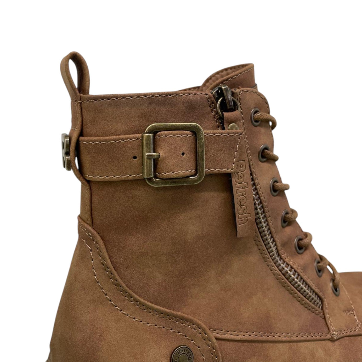 Refresh Sneakers Alta Donna in Camoscio Camel con Fibbia