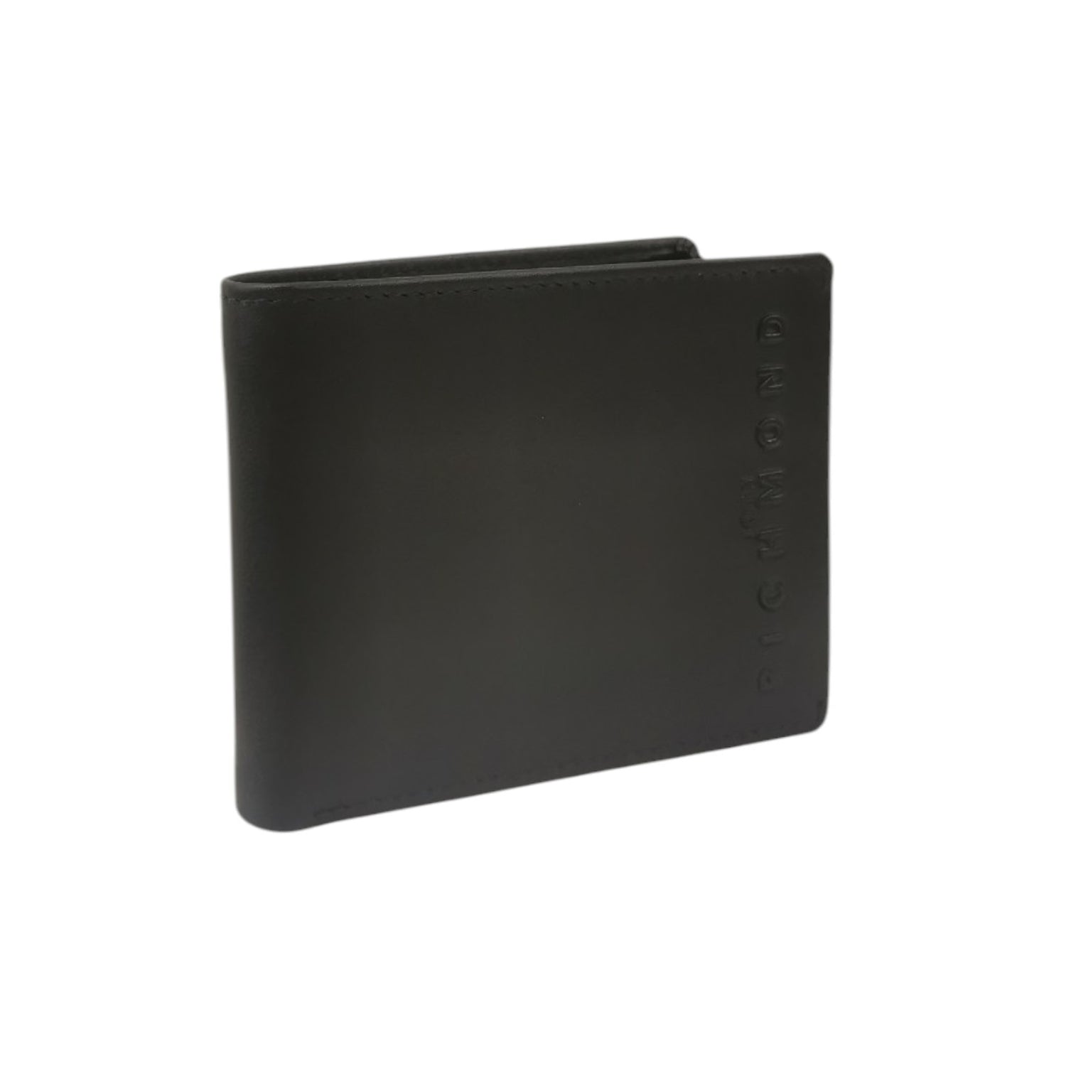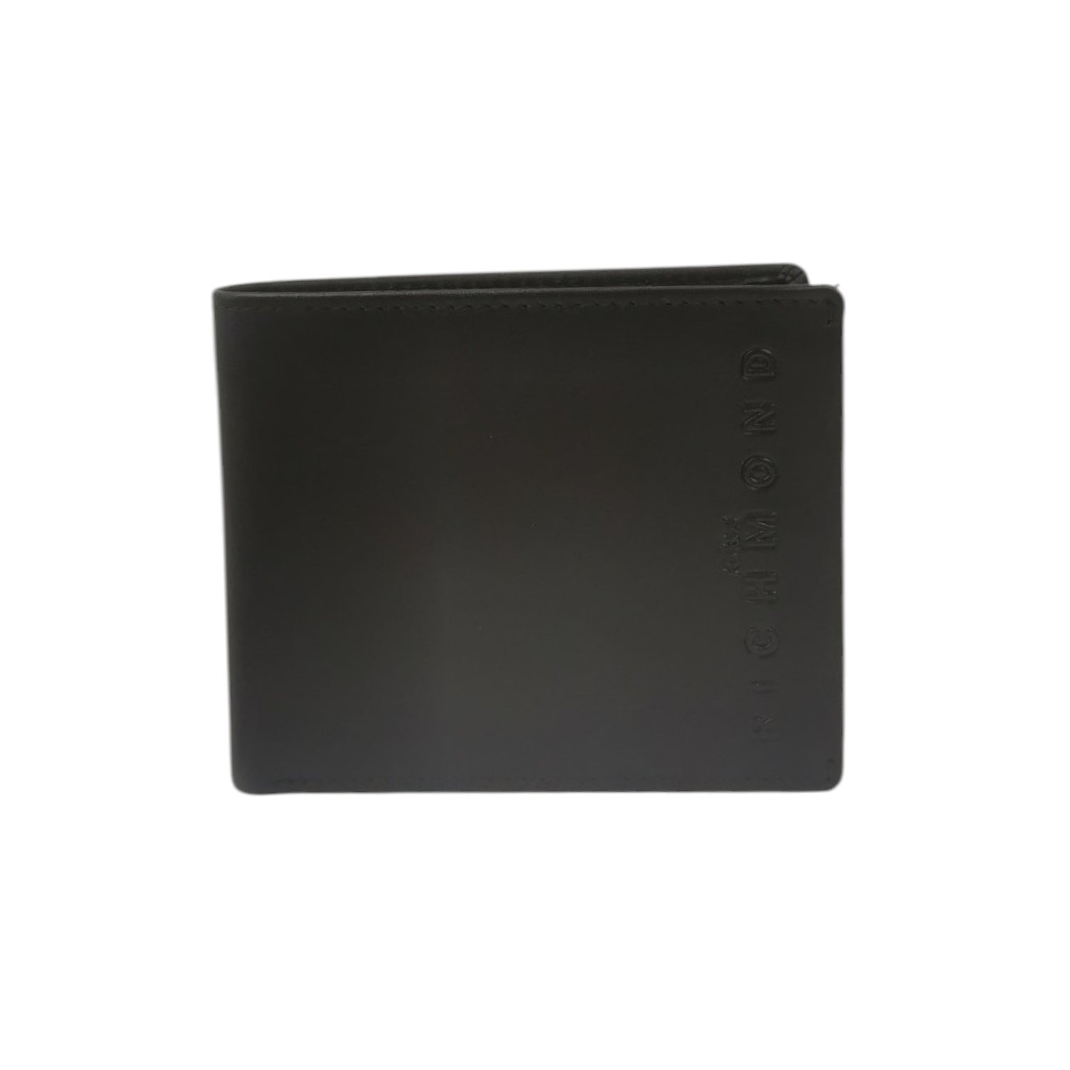 Il Portafoglio firmato John Richmond, dal design compatto realizzato in pelle di alta qualità nera, è elegante e funzionale, è caratterizzato da targhetta logo argento e da 3 scomparti portatessere, banconote e per le monete con bottone a pressione, adatto al quotidiano.