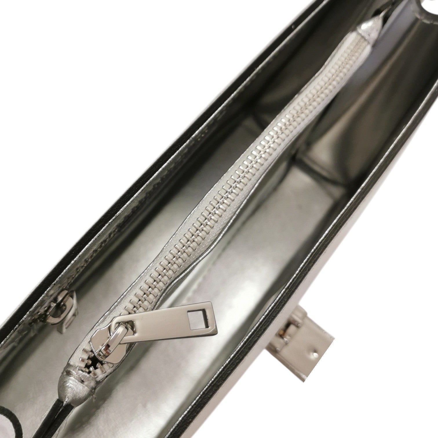 La Borsa a mano firmata John Richmond, realizzata in pelle nella variante bianca argento è caratterizzata da targhetta logo frontale e da una tracolla regolabile e removibile, all'interno presenta tre scomparti di cui quello centrale chiuso con zip.
