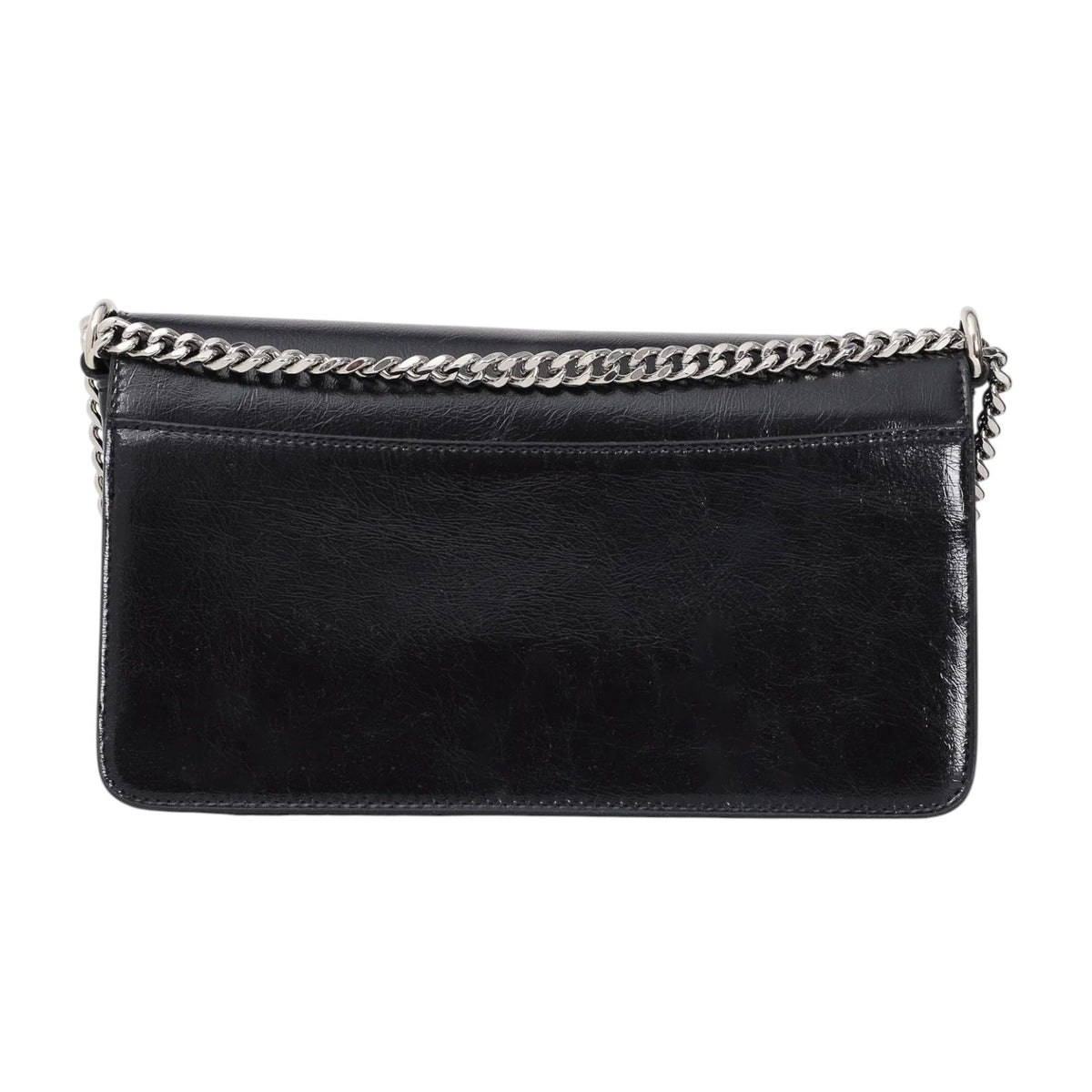 John Richmond Borsa a Tracolla Donna in Ecopelle Lucida Nera con Logo e Catena Argento
