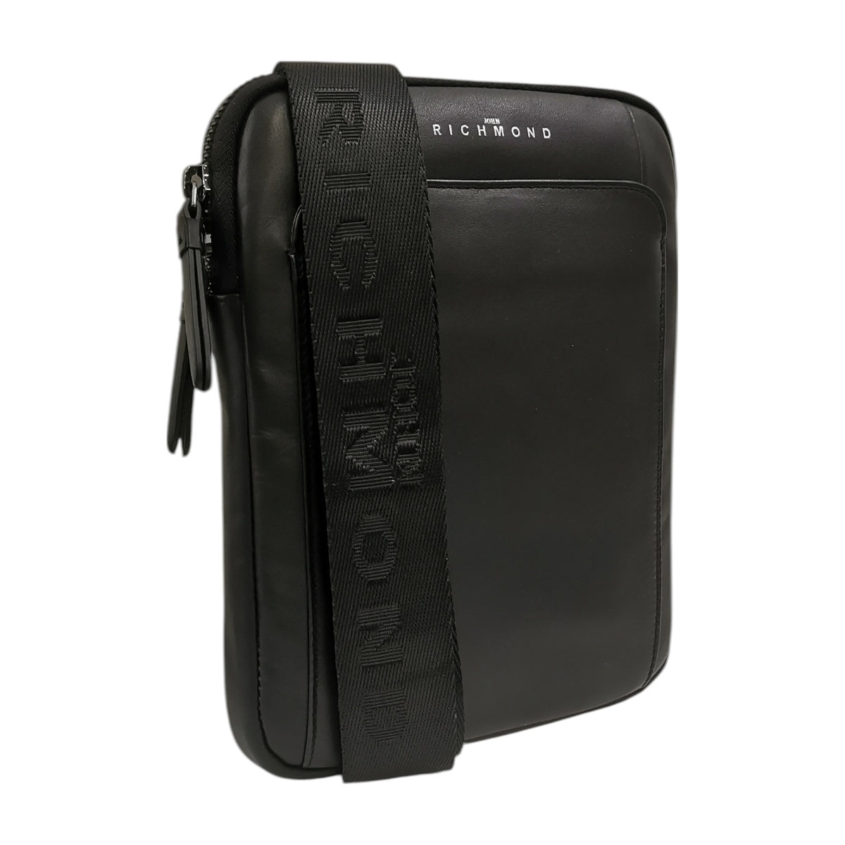 John Richmond Borsello Nero in Pelle con Tracolla Logata da Uomo