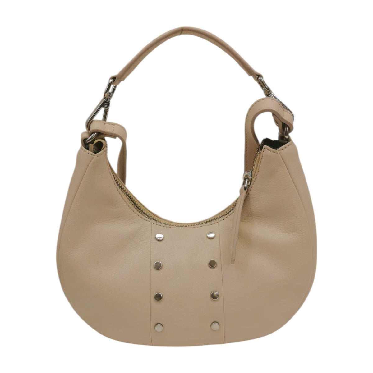 John Richmond Mezza Luna Piccola Donna in Pelle Beige con Tracolla e Borchie Frontali