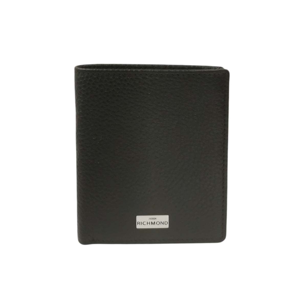 John Richmond Portacarte Uomo in Pelle Martellata Nera con Bottone Magnetico e Targhetta