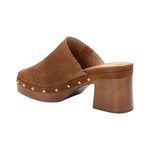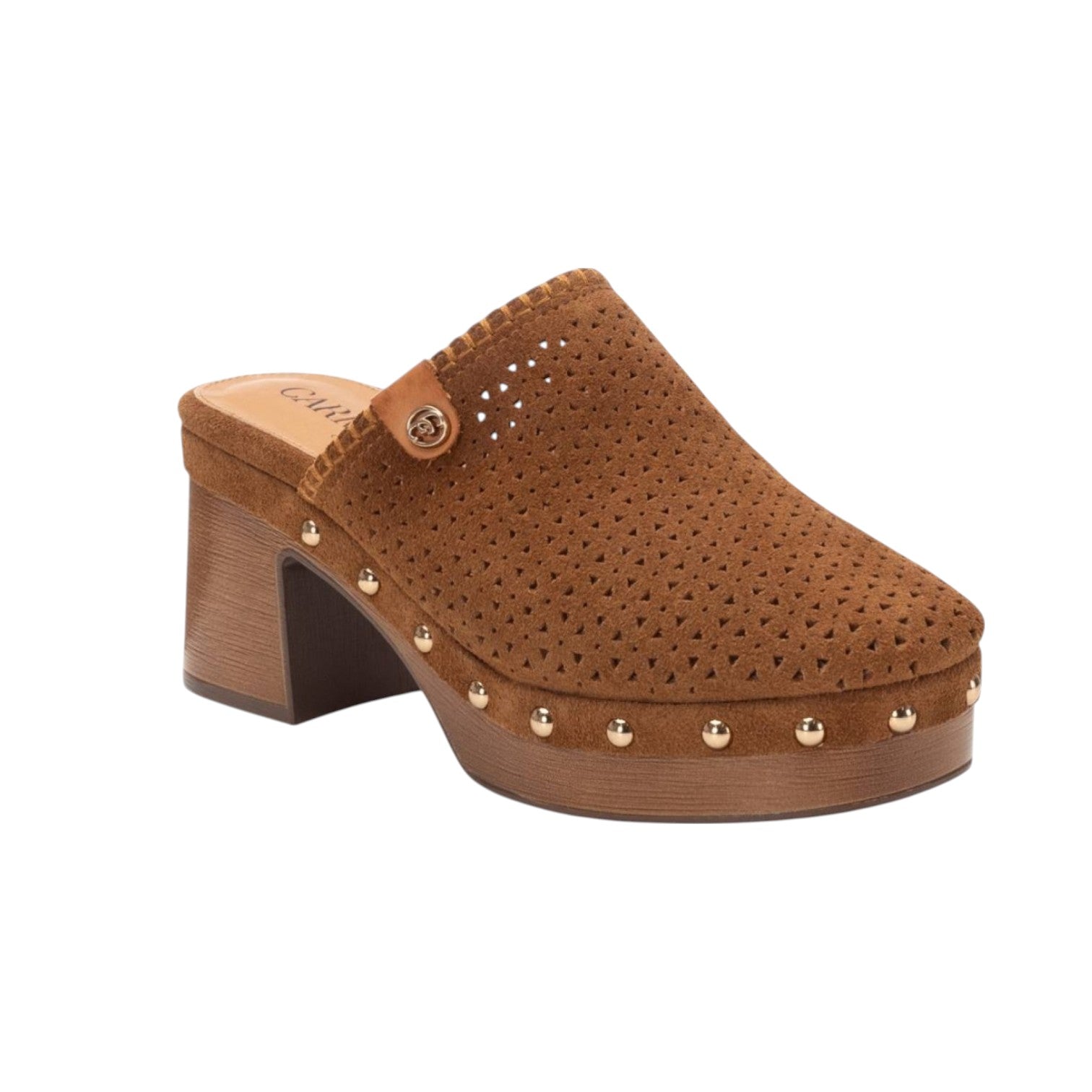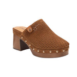 Il Sabot firmato Carmela, realizzato in morbido camoscio è caratterizzato da una lavorazione traforata e da un'interno e sottopiede foderati in morbida pelle e da dettaglio borchie attorno alla suola con fondo in gomma.