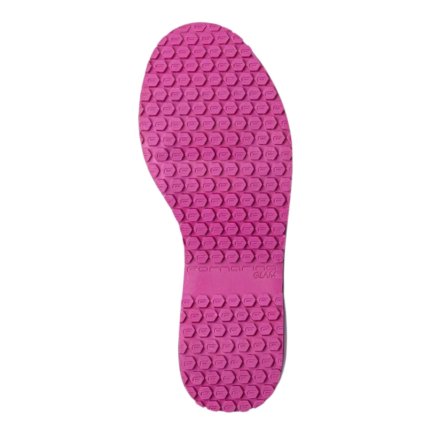 Il Sabot firmato Fornarina, realizzato in ecopelle è caratterizzato da una punta chiusa e da plantare in pelle. e comodo platform di 9cm. Questo modello emana un senso di nostalgia ispirato al periodo boho chic, aggiungendo al contempo un tocco fresco e moderno con la sua suola rosa acceso.