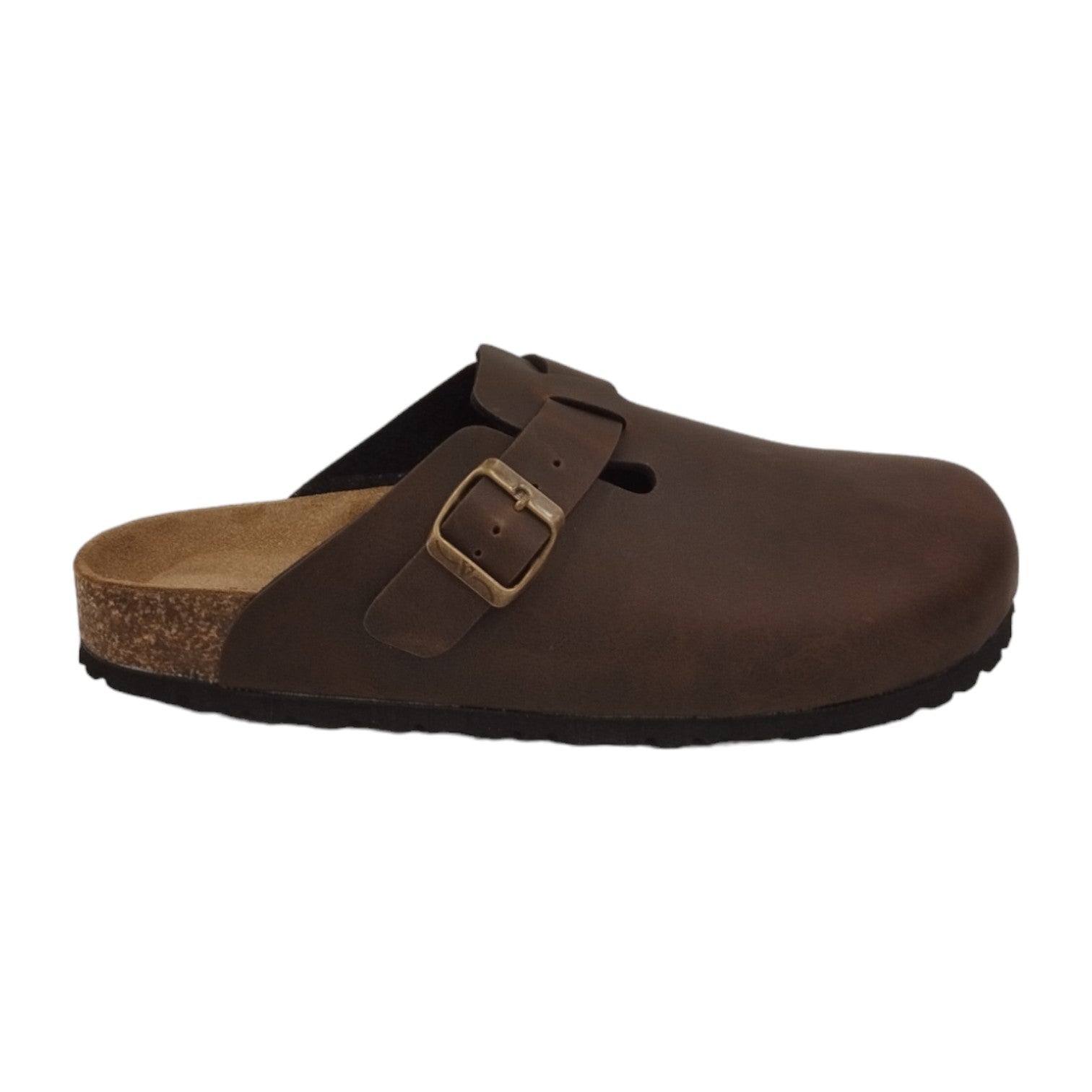Il Sabot firmato Valleverde, realizzato in ecopelle è caratterizzato da una chiusura con fibbia regolabile per un maggiore stabilità del piede. Sottopiede anatomico rivestito in pelle per assicurare traspirabilità e igiene con suola in sughero.