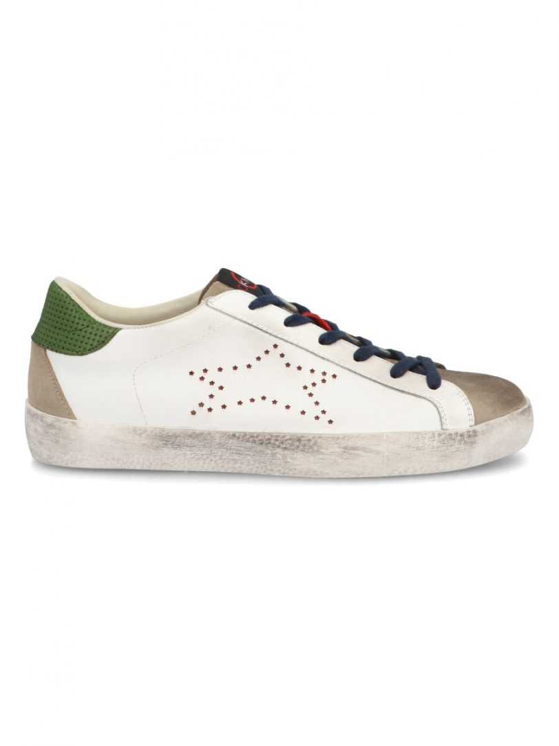 Rivestita con una tomaia in pelle di vitello bianca, le Okinawa 1810 sono le sneakers perfette se cerchi un look sportivo e d'impatto. La stella traforata e il laccio nero risaltano sul bianco della scarpa, pensata e prodotta con un percorso 100% Made in Italy.
