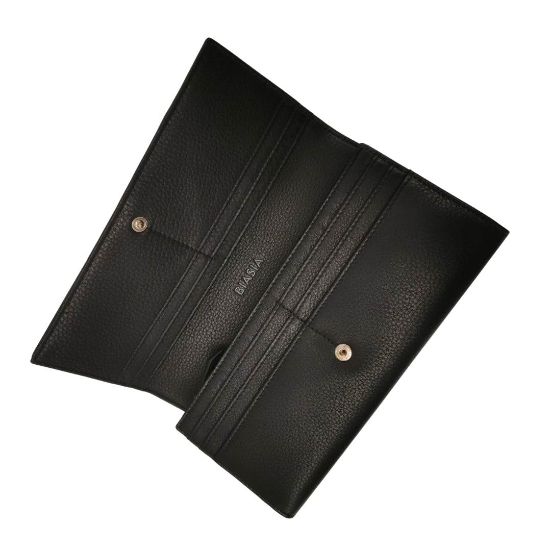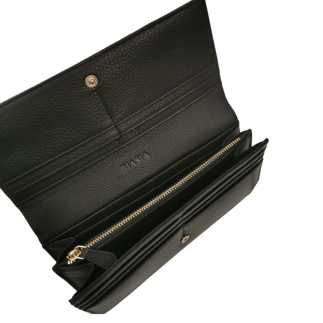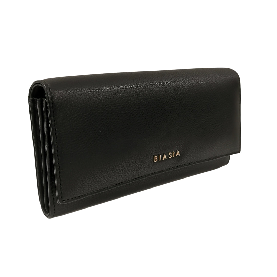 Biasia Portafoglio in Pelle Martellata da Donna Nero con Patta Frontale
