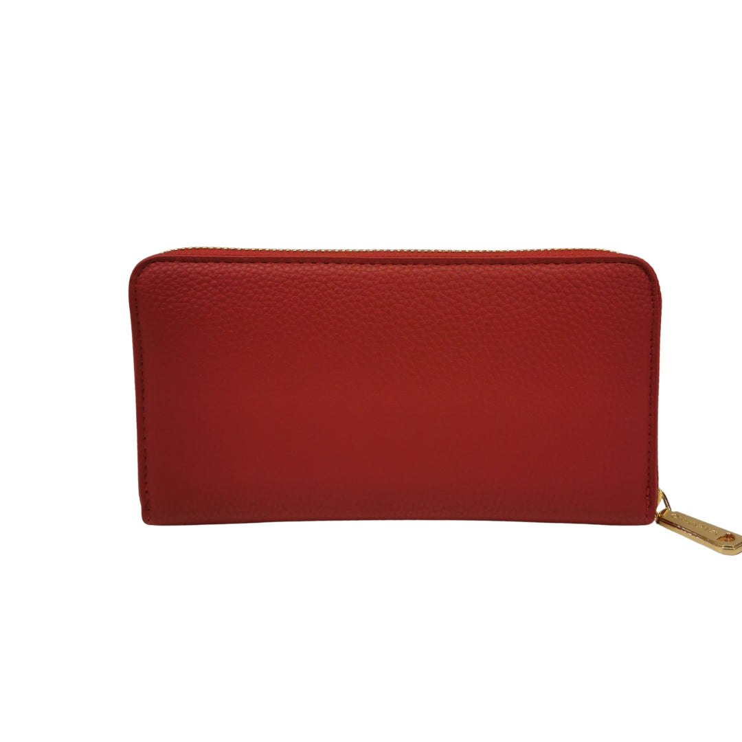 Mario Valentino Portafoglio Grande Donna Rossa in Ecopelle Martellata Unica Zip
