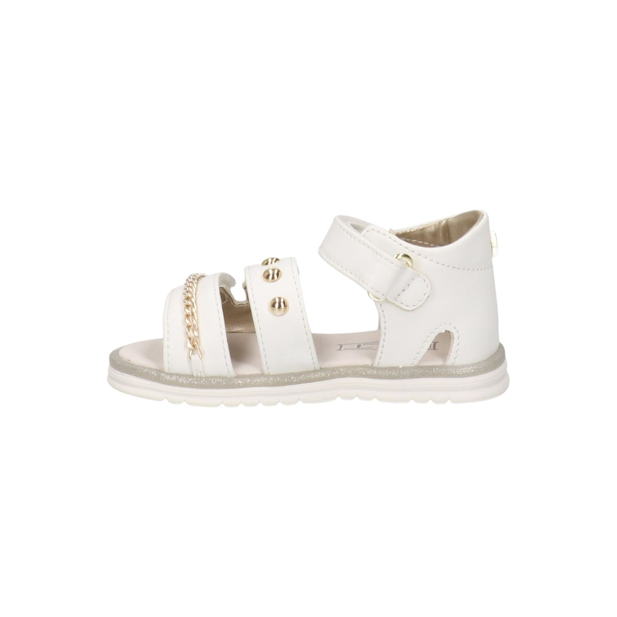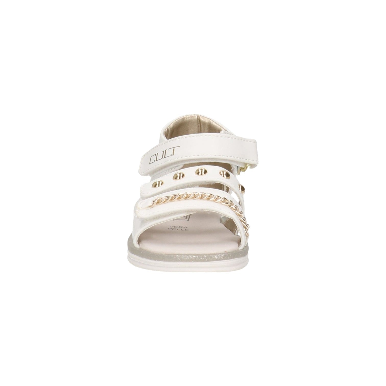 Il Sandalo firmato Cult Young, realizzato con tomaia in ecopelle bianca è arricchita da una catena decorativa e applicazioni metalliche, mentre la chiusura a doppio strappo assicura una calzata pratica e regolabile. La suola flessibile e leggera lo rende perfetto per le giornate attive.