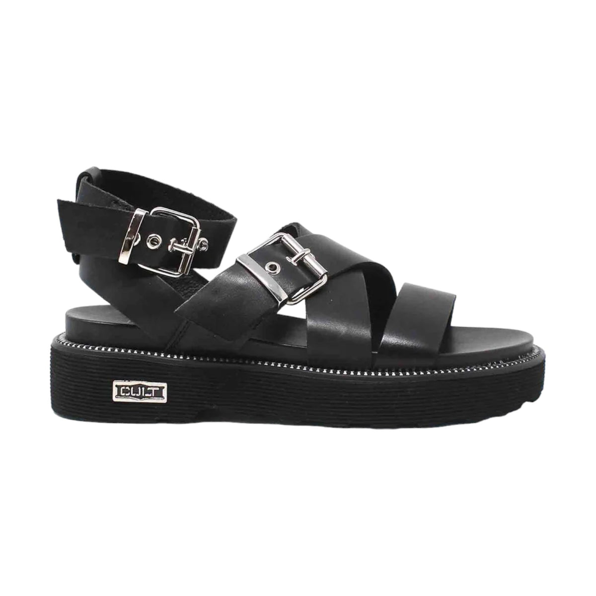 Cult Sandalo Nero con Doppia Fibbia da Donna