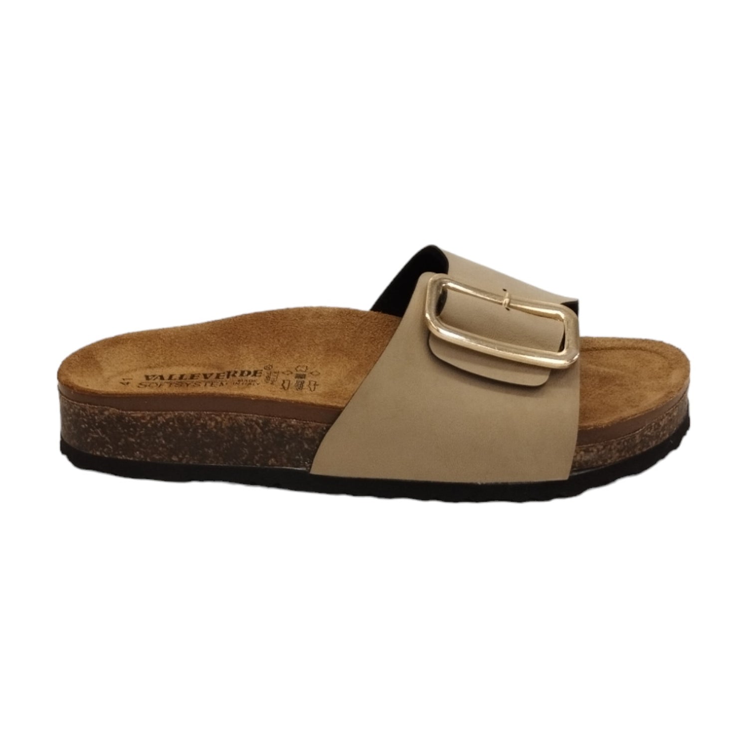 La Ciabatta firmata Valleverde, super confortevole dotato di suola in sughero e caratterizzato da una fascia larga con fibbia regolabile dorata è realizzata in ecopelle, leggera e traspirante, si contraddistingue per un alto livello di ammortizzazione, grazie al sistema sofstistem.