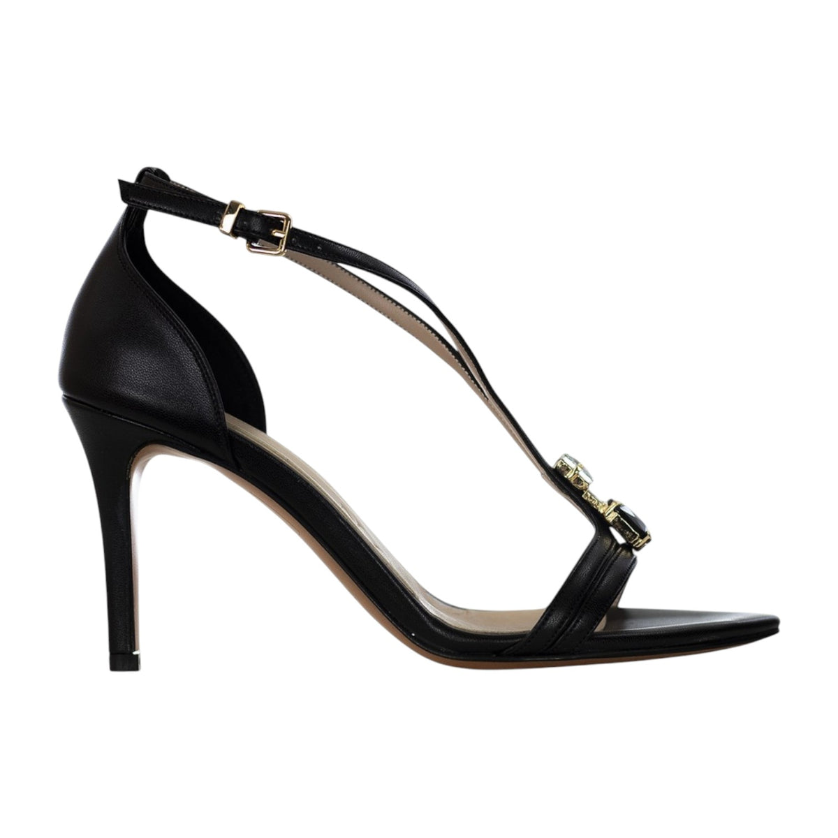 Il Sandalo firmato Albano, realizzato in ecopelle tallonato dietro è caratterizzato da pietre gioiello nere e argentate, e da cinturino con chiusura fibbia regolabile, inoltre presenta un tacco a stiletto alto 8cm. Ideali per un look elegante e raffinato, adatte ad ogni occasione.