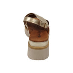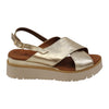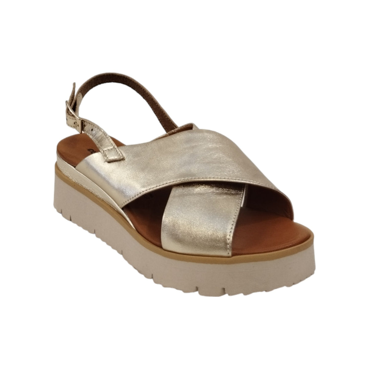 Il Sandalo firmato Laura Bizzarri, realizzato in vera pelle laminata 'Made in Italy' è caratterizzato da due ampie fasce ad incrocio e da una comoda zeppa alta 5cm con morbido sottopiede rivestito in pelle.