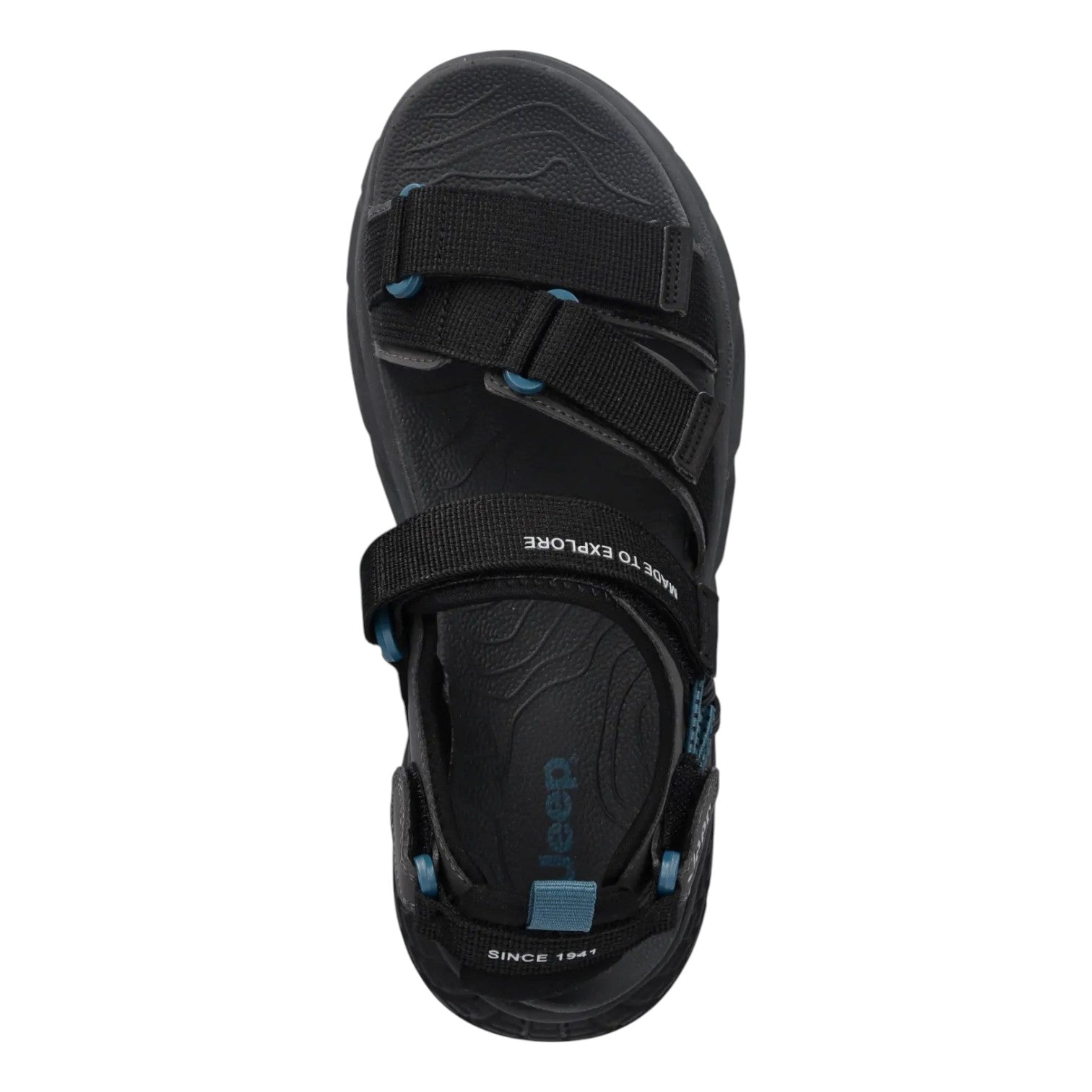 Jeep Sandalo Uomo in Tessuto Nero con Doppio Strappo