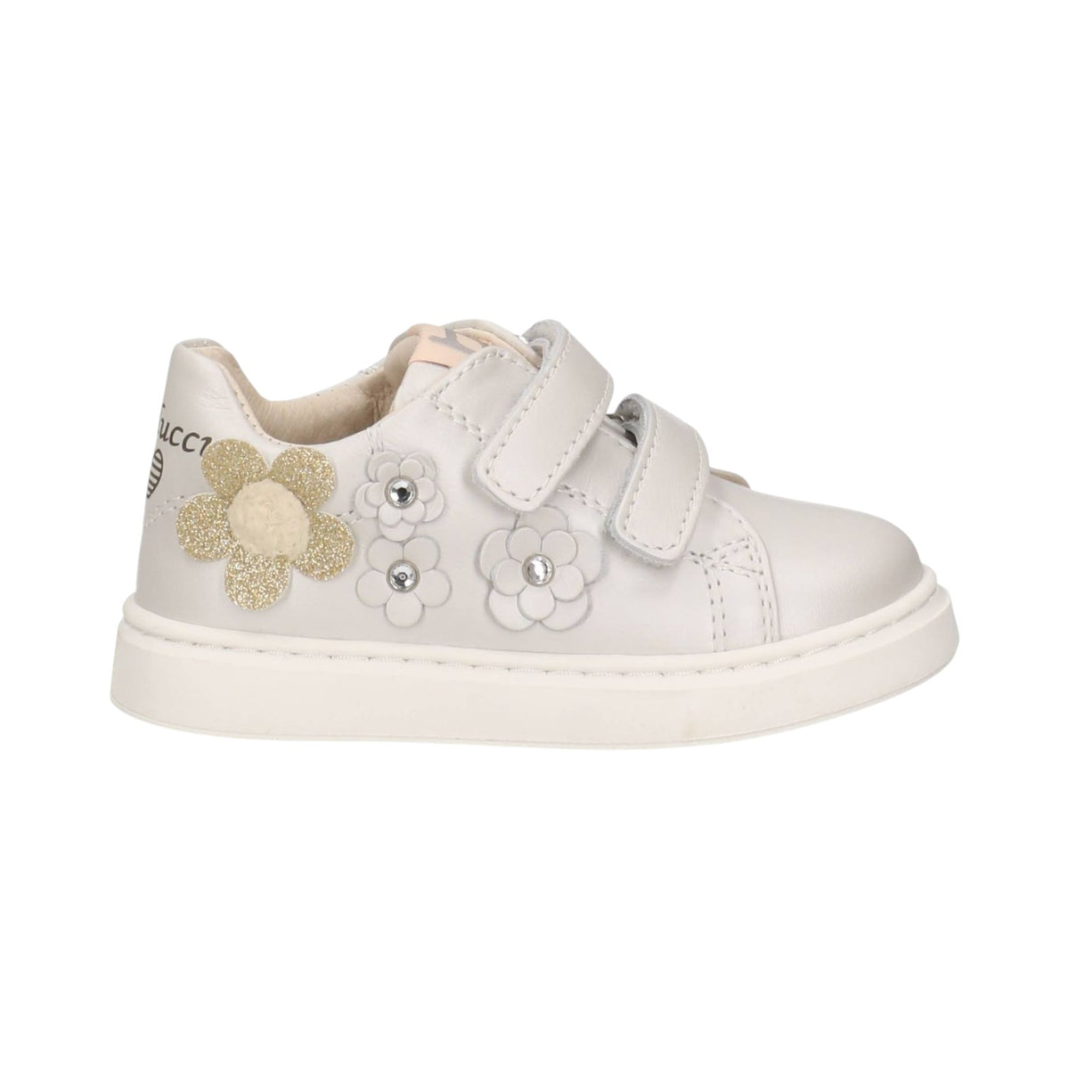 Balducci Sneakers Bambina in Pelle Bianca con Doppio Strappo e Fiori