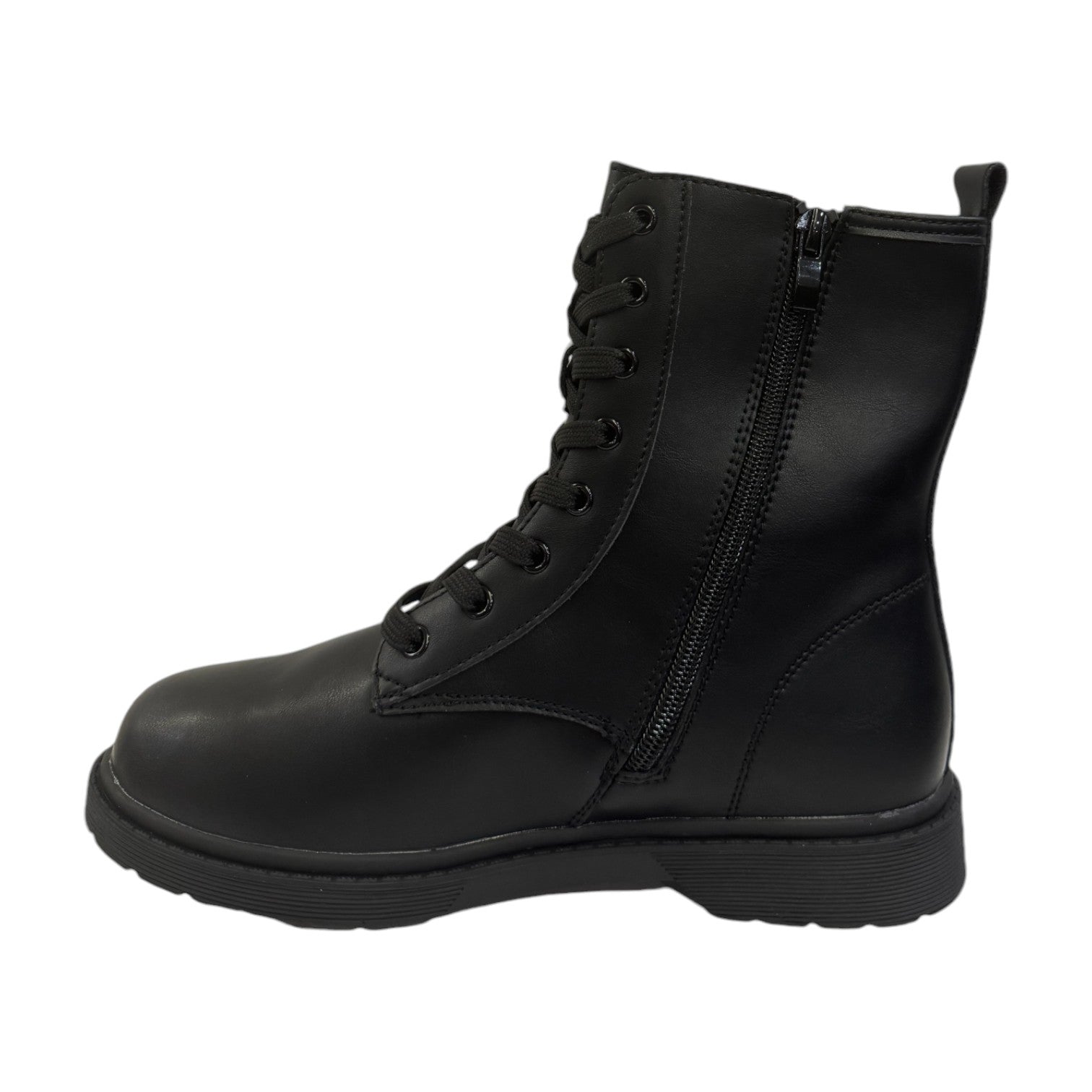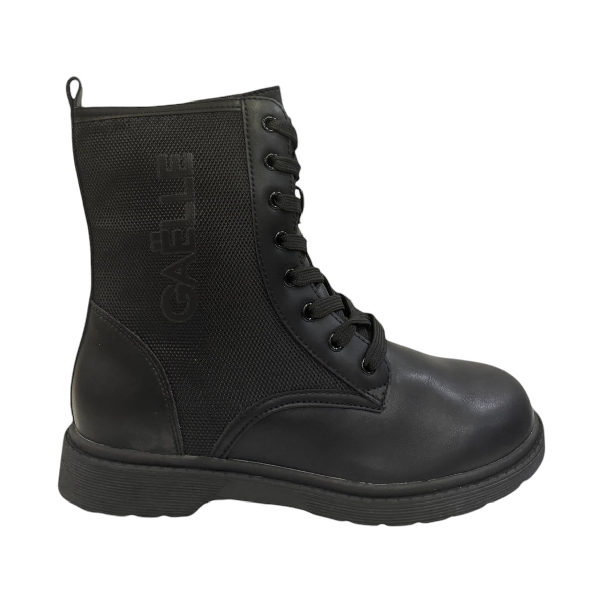 Gaelle Anfibio Bambina in Pelle e Tessuto Nero con Lacci e Zip 37/38