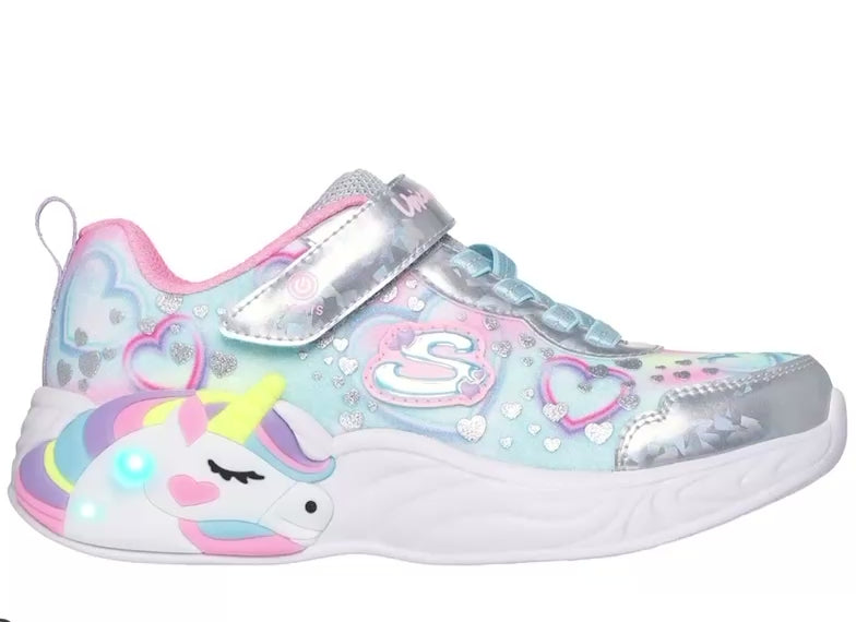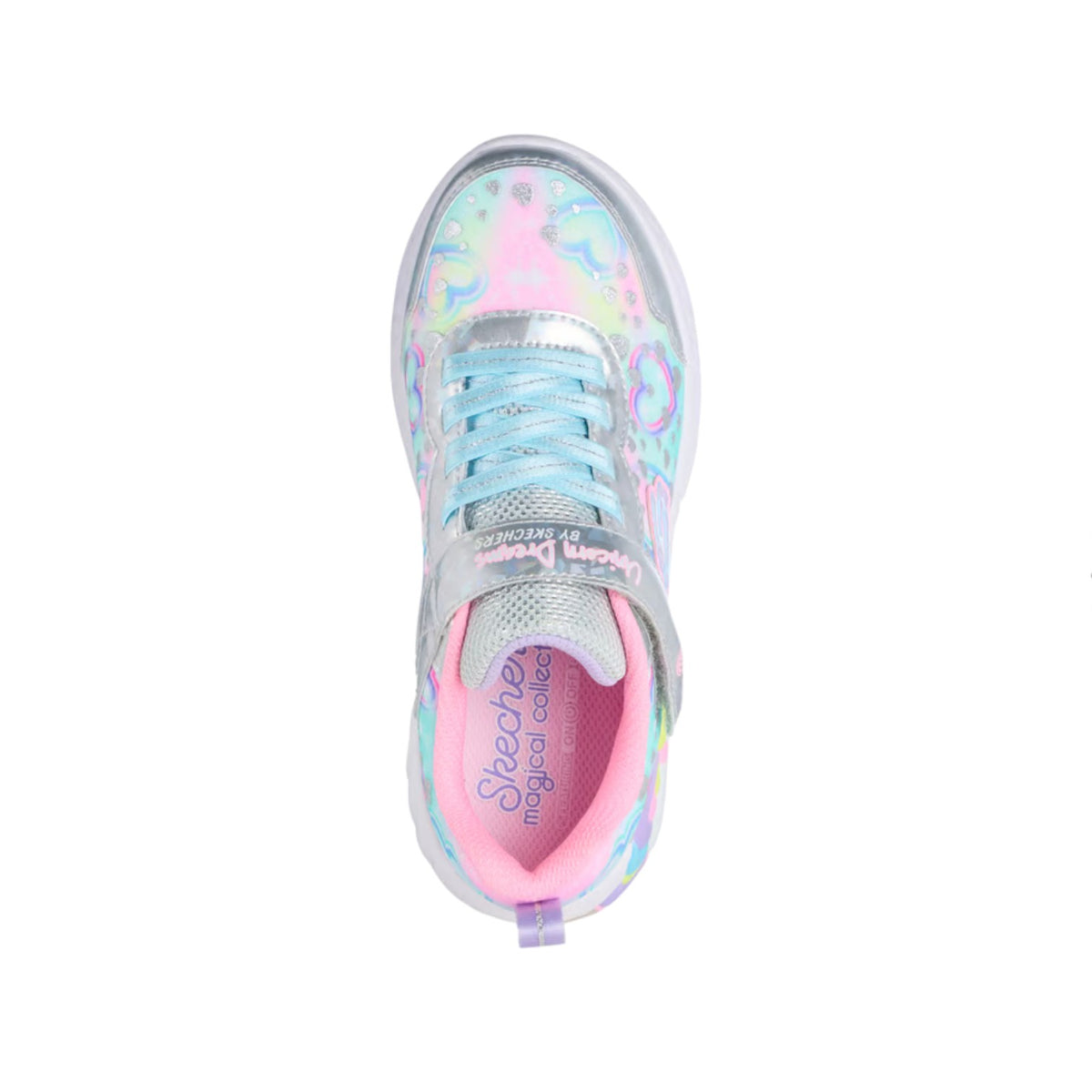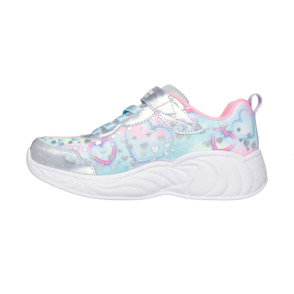 Skechers Sneakers Bambina Argento Multi con Luci S-Lights: Unicorn Dreams - Heart Sparkles