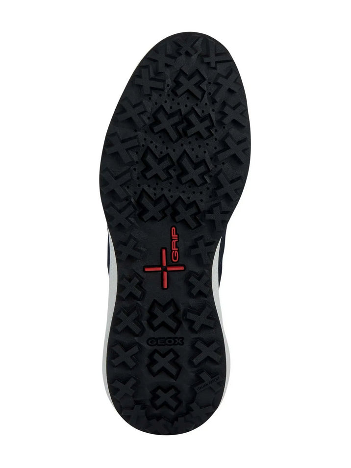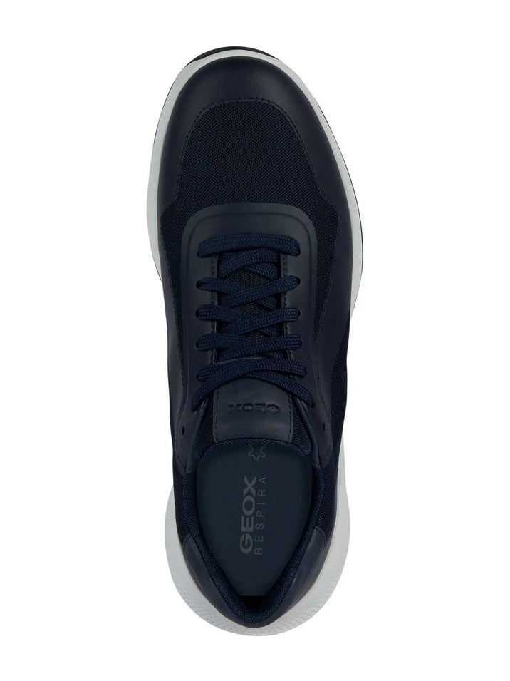 La Sneaker firmata Geox, con struttura caratterizzata da un design casual contemporaneo e dalla tomaia realizzata in tessuto mesh blu, sottopiede rivestito di pelle ed estraibile, suola bianca a contrasto con battistrada in gomma dal grip eccellente ed antiscivolo.