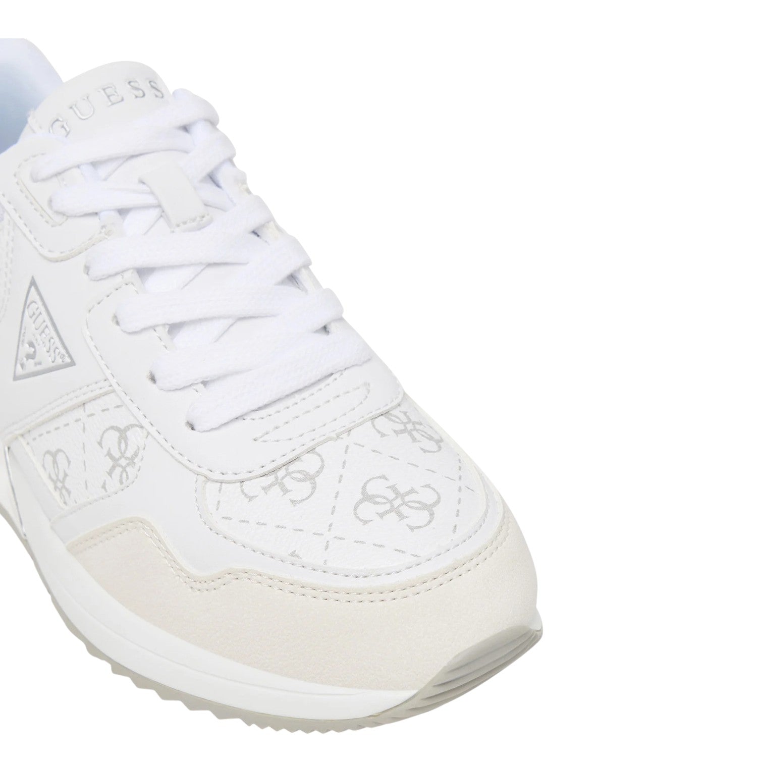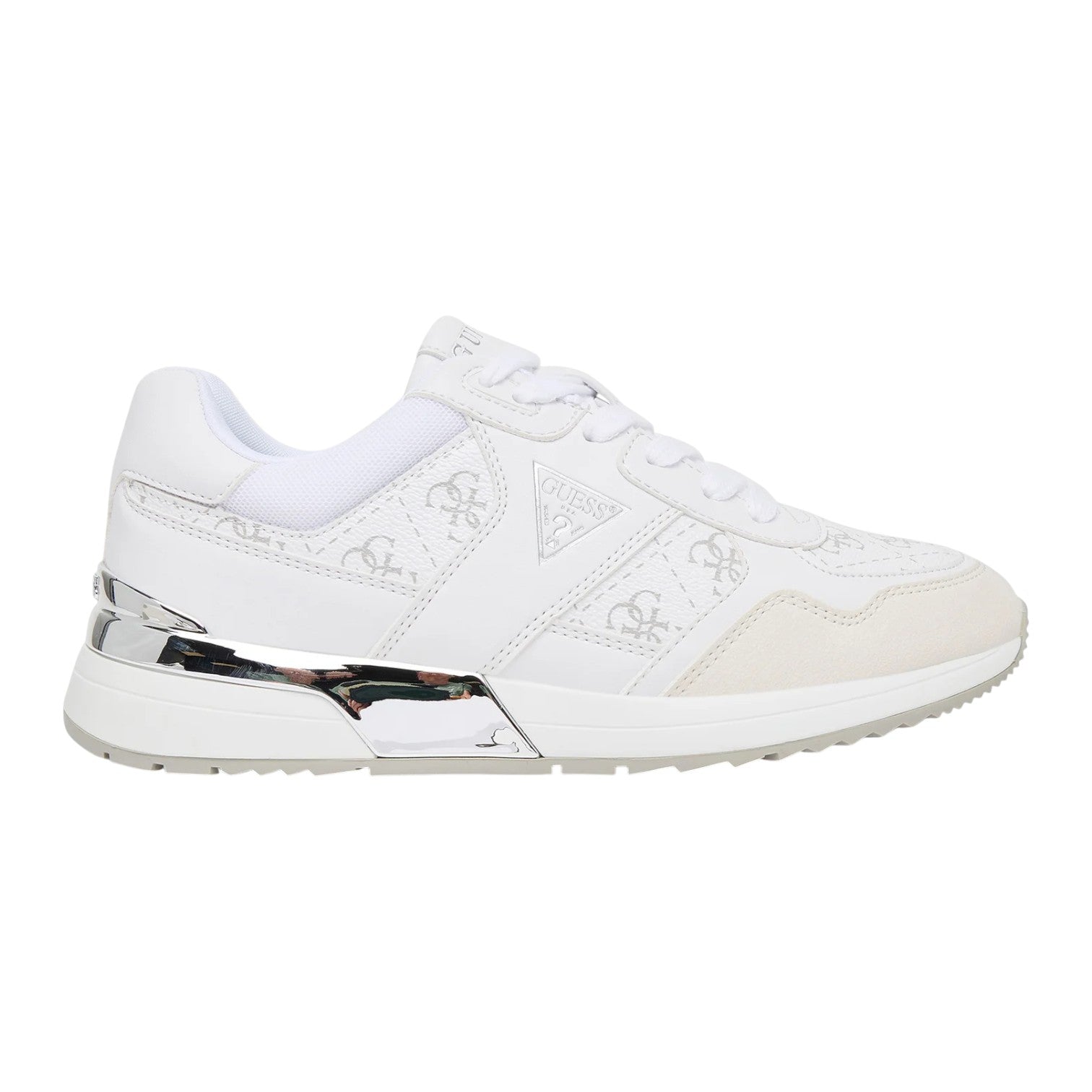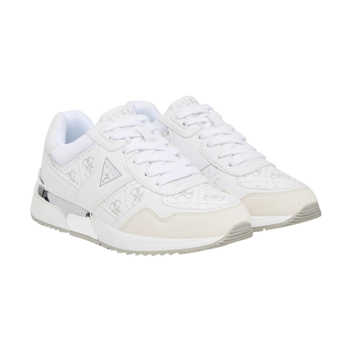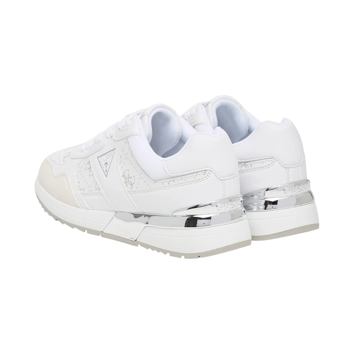 Guess Sneakers Donna in Ecopelle Bianca e Grigia Stampa Logo Peony