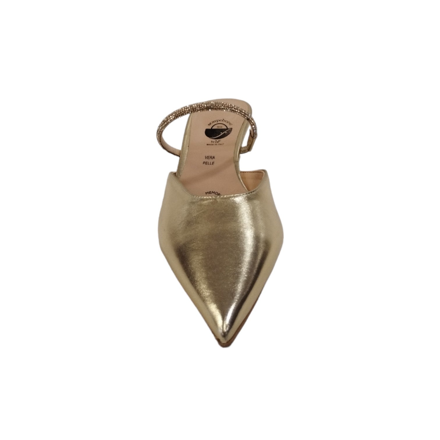 Il Sabot firmato Scarpeborseonline, realizzato in ecopelle laminata platino è caratterizzato da una fascia centrale ricoperta di mini strass e da un particolare tacco basso alto 4cm, questo modello è una scelta d'élite per chi desidera distinguersi con discrezione e classe.