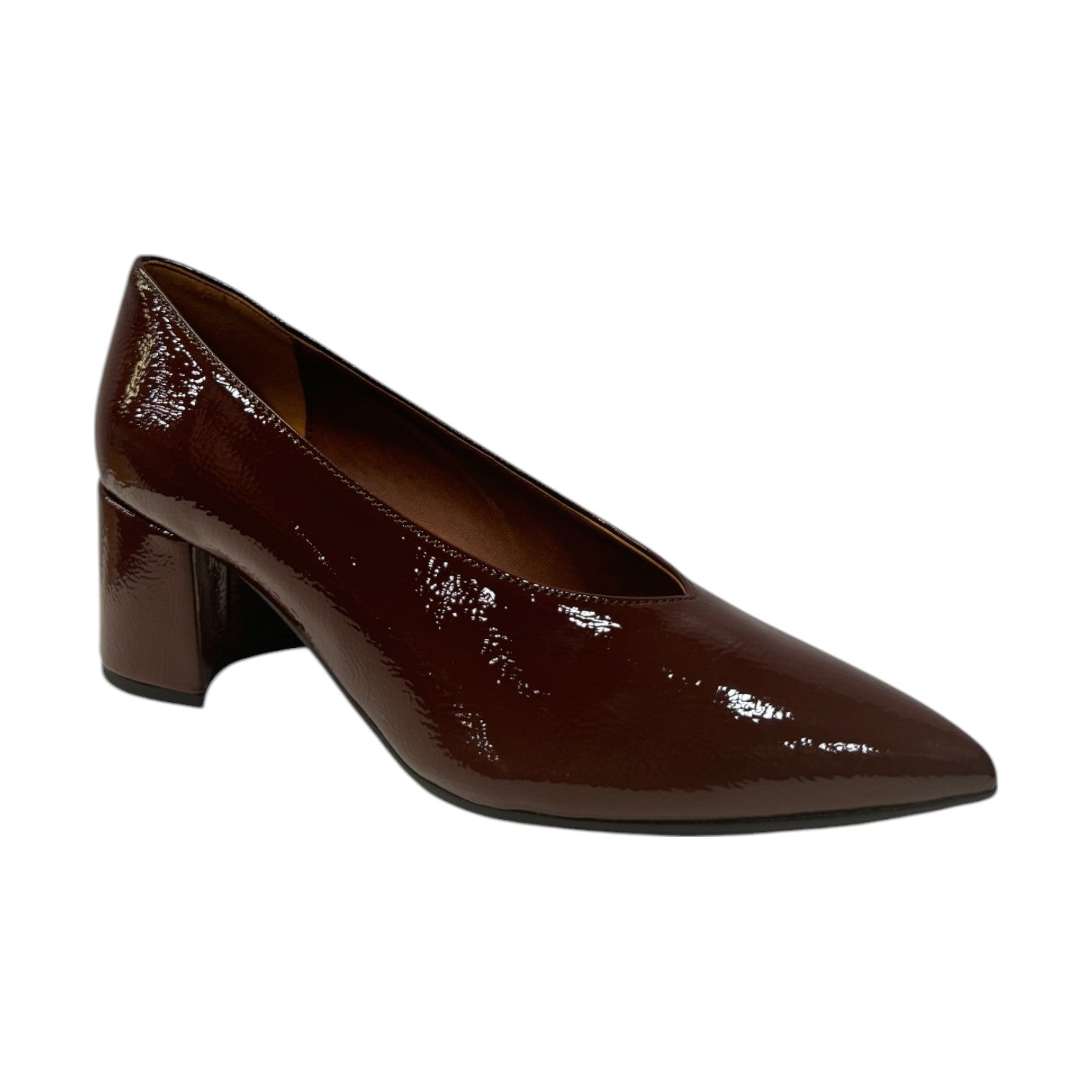 Il Décolleté firmato Scarpeborseonline, realizzato in vernice qui proposto in questa variante testa di moro è caratterizzato da una punta sfilata davanti, inoltre dispone di interno foderato in ecopelle con sottopiede rivestito in pelle, il tacco largo di 6cm offre un maggior comfort.