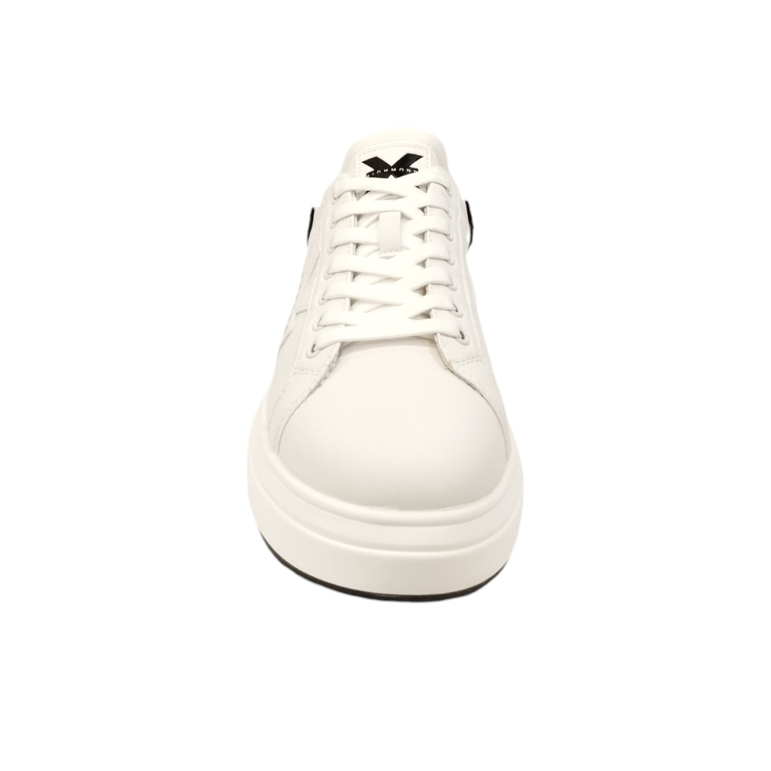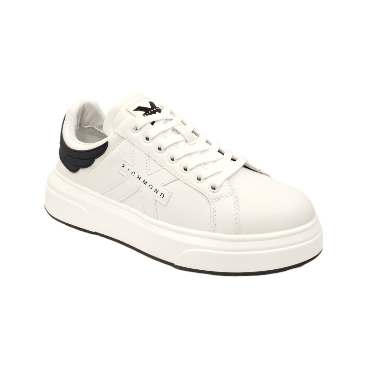 La Sneakers firmata John Richmond, realizzata in pelle è caratterizzata dalinguetta logata a contrasto, gambetto colorato con logo inciso e iconica bandierina tono su tono applicata sul lato esterno con lettering del log. Pesenta la classica chiusura con lacci in tessuto, una suola leggermente rialzata, la fodera interna in tessuto e il plantare interno removibile.