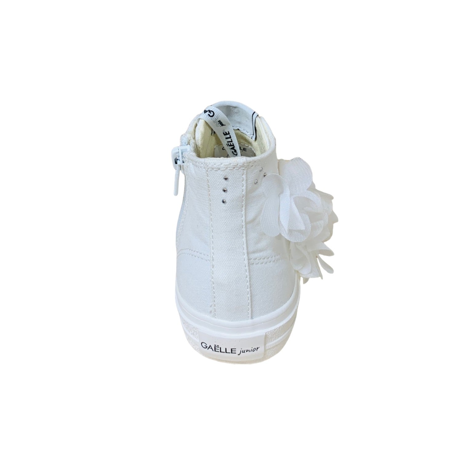 La Sneakers firmata Gaelle, realizzata in tessuto modello alto alla caviglia è caratterizzato da applicazioni fiori in tulle e strass sul lato che sono l'aggiunta perfetta al guardaroba di una bambina. Come sistema di chiusura presenta dei lacci regolabili logati con zip laterale per facilitare la calzata.