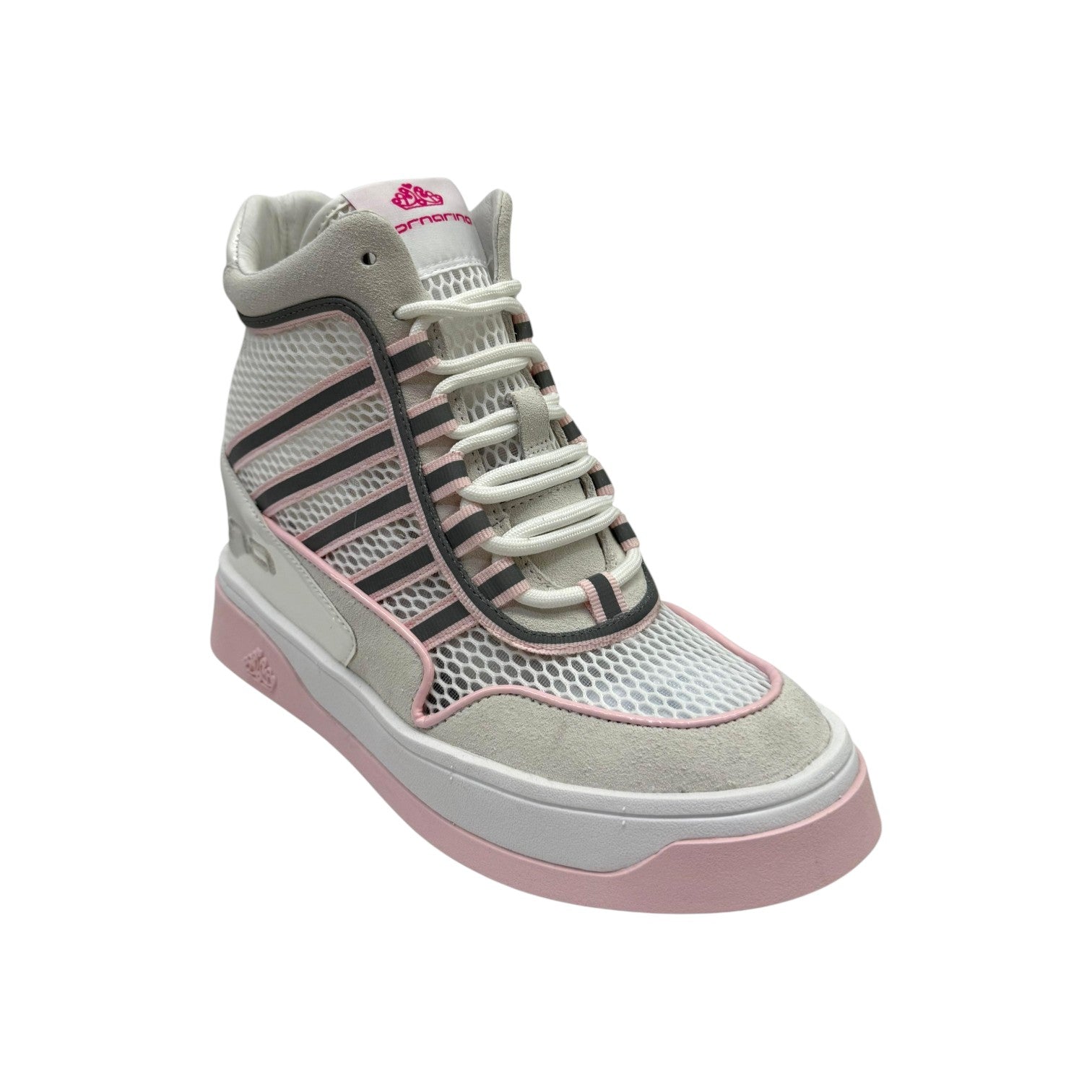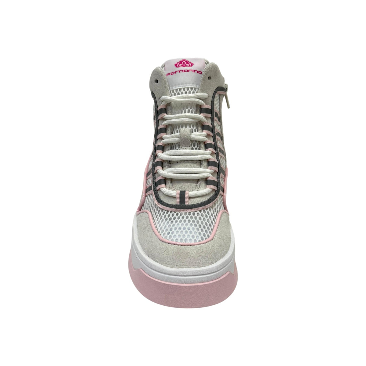 Fornarina Daisy Sneakers Alta Donna Bianca Rosa con Zeppa Alta 80mm