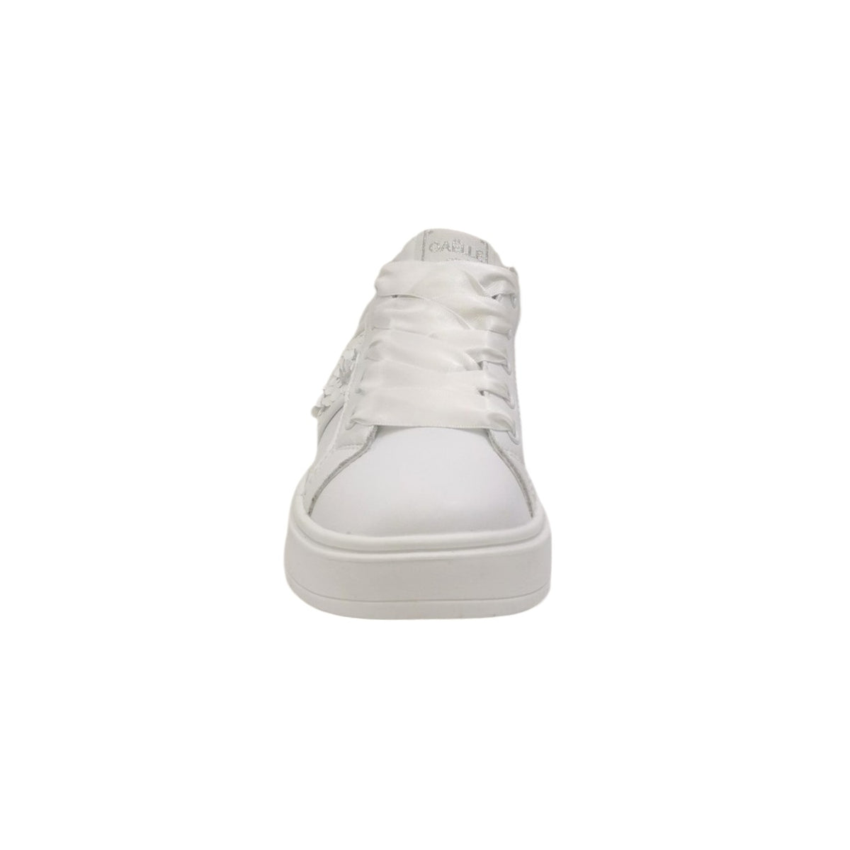 Gaelle Sneakers Bambina in Pelle Bianca con Paillettes