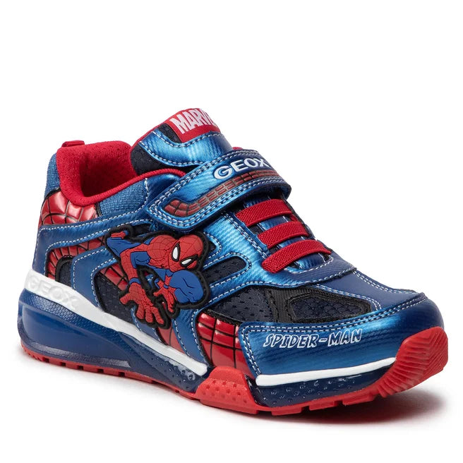 La Sneakers firmata Geox, è dedicata ai piccoli fan di Spider-Man, protagonista delle grafiche sulla tomaia declinata in blu navy e royal blu con tocchi di rosso, i colori tipici del suo personaggio. Realizzata in tessuto ed ecopelle, è dotata di luci integrate nella suola trasparente, per accendere il divertimento ad ogni passo, al fianco del loro supereroe preferito.